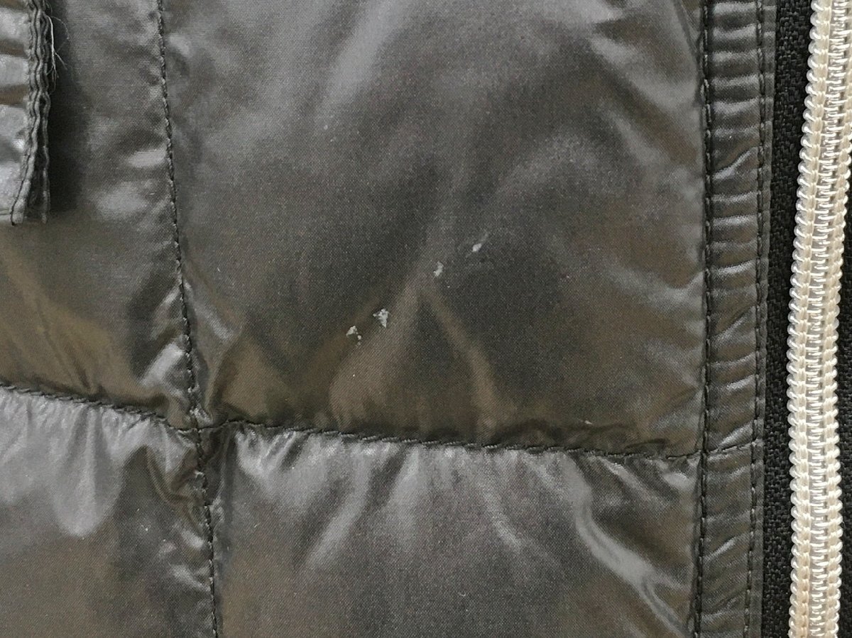 右ポケットのファスナーにサビや変色、正面に汚れがございます。