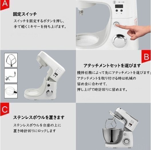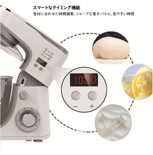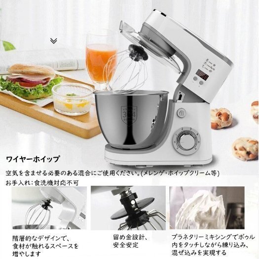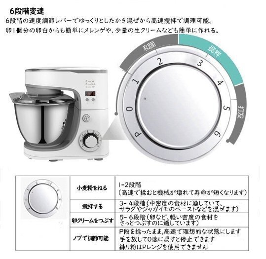 【スタンドミキサー初心者に最適】手作業は練習・経験がない人には簡単ではない、アタッチメントを付け替えるだけで、生地をこねる、卵を泡立てる、クリームを撹拌するなどの作業に対応、時間と手間を省く