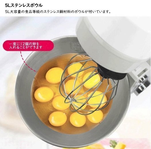 スタンドミキサー 5L大容量 3種類アタッチメント付き 低騒音 6段階スピード調節 タイミング機能家庭用 業務用 こねる ミキサー 電動 お菓子