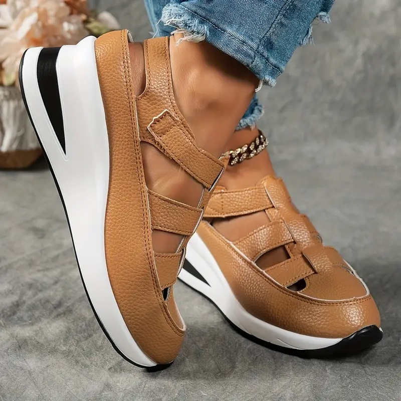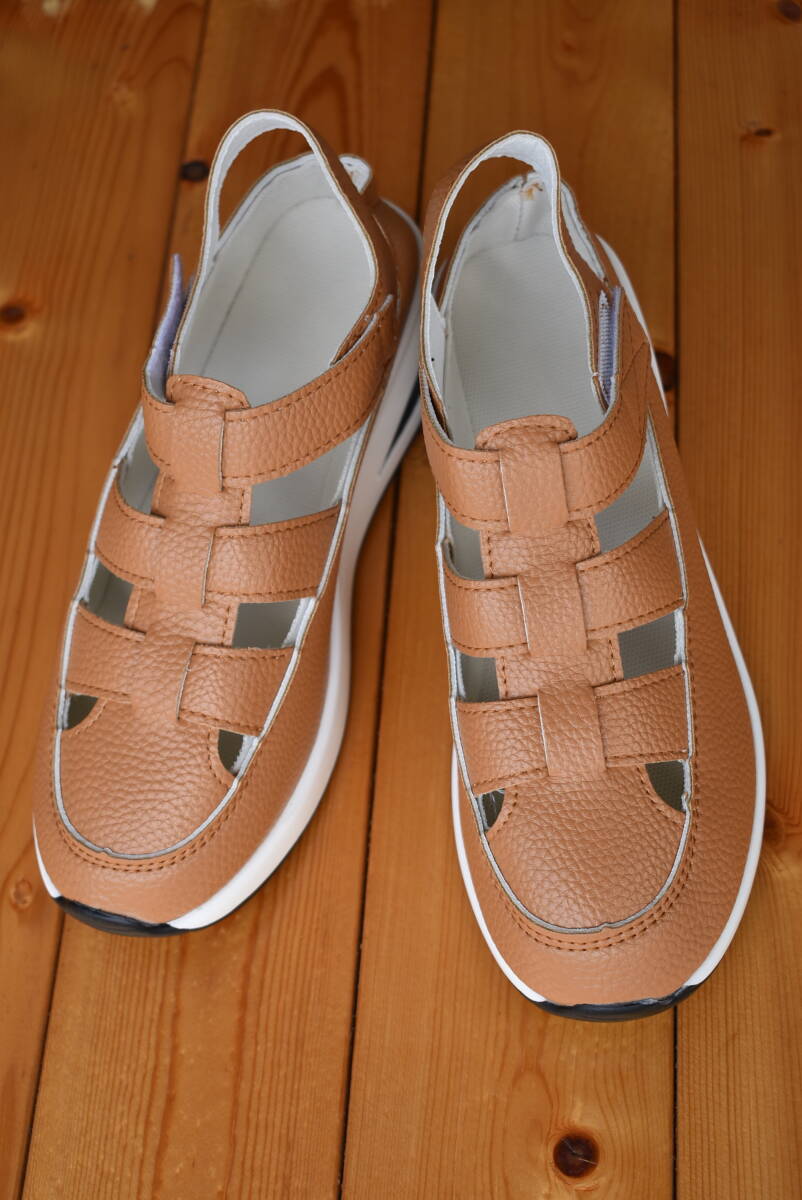 23 Tan レディース ストラップスニーカー ウェッジスニーカー 厚底