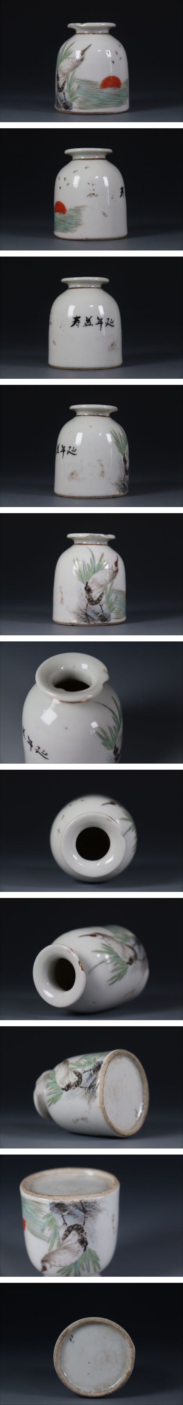 | 商品説明 | 商品名:蔵出し品 中国古玩 唐物 十錦 小花瓶 付属品:なし。 サイズ:高さ5,8cm、口径3,2cm、高台4,8cm。 状態:経過のスレ、口縁に欠けがございます。 |