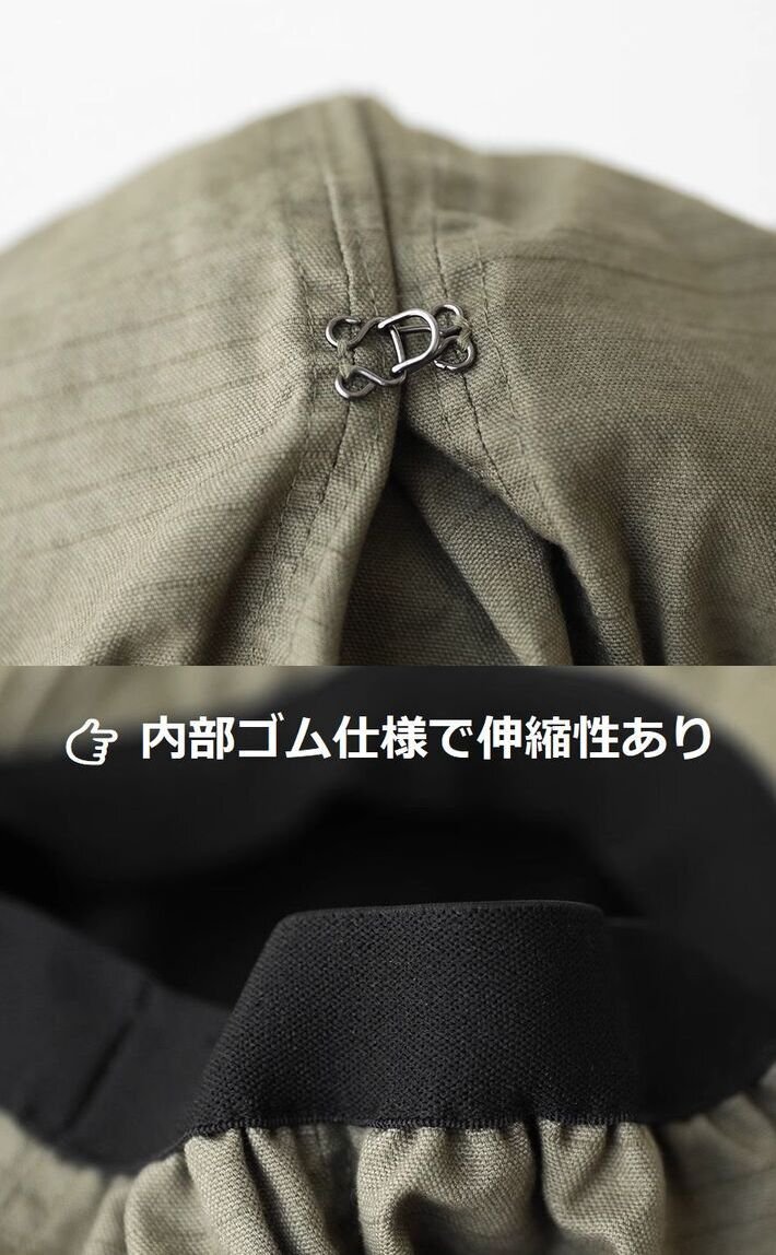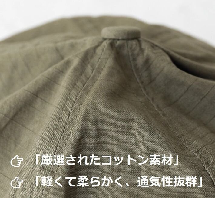 顔まわりの印象も柔らかく見せてくれる、万能キャップです◎
