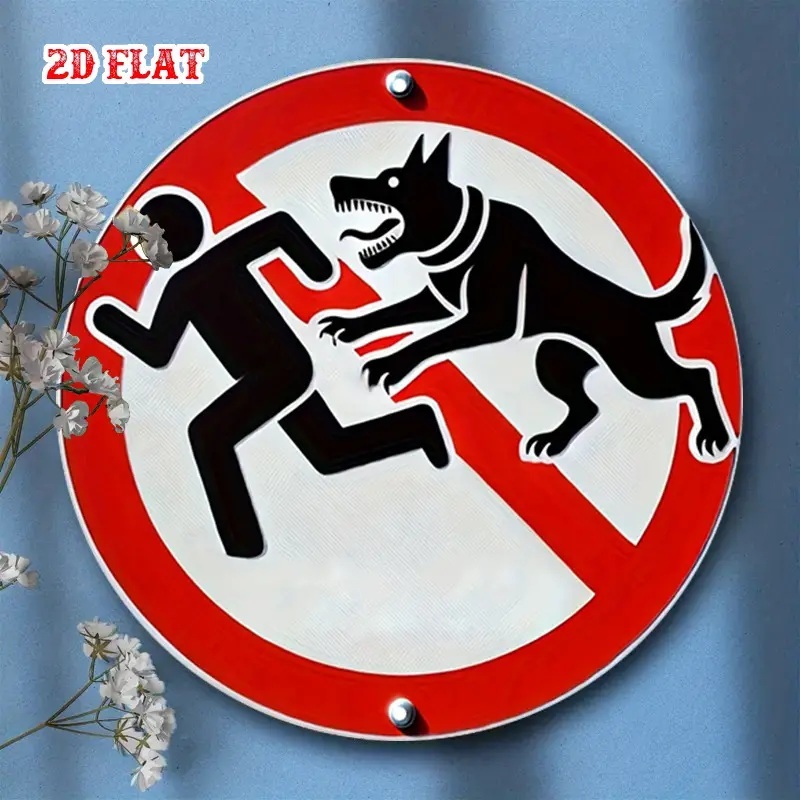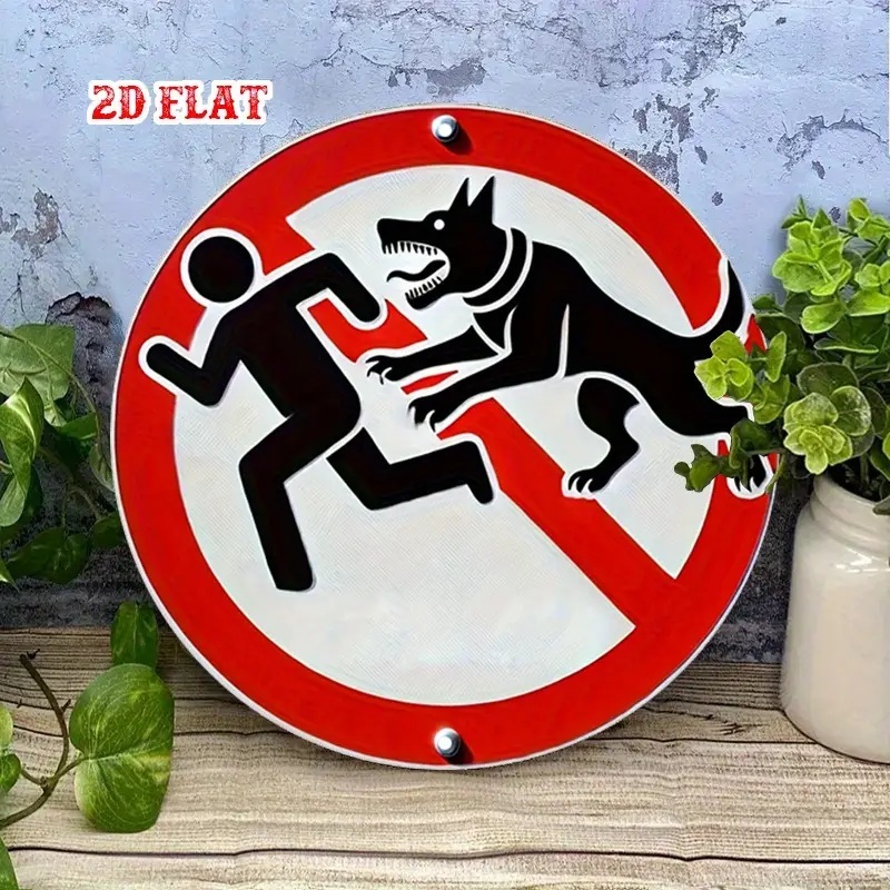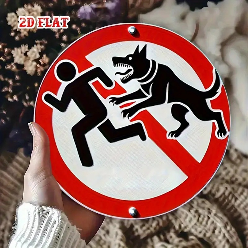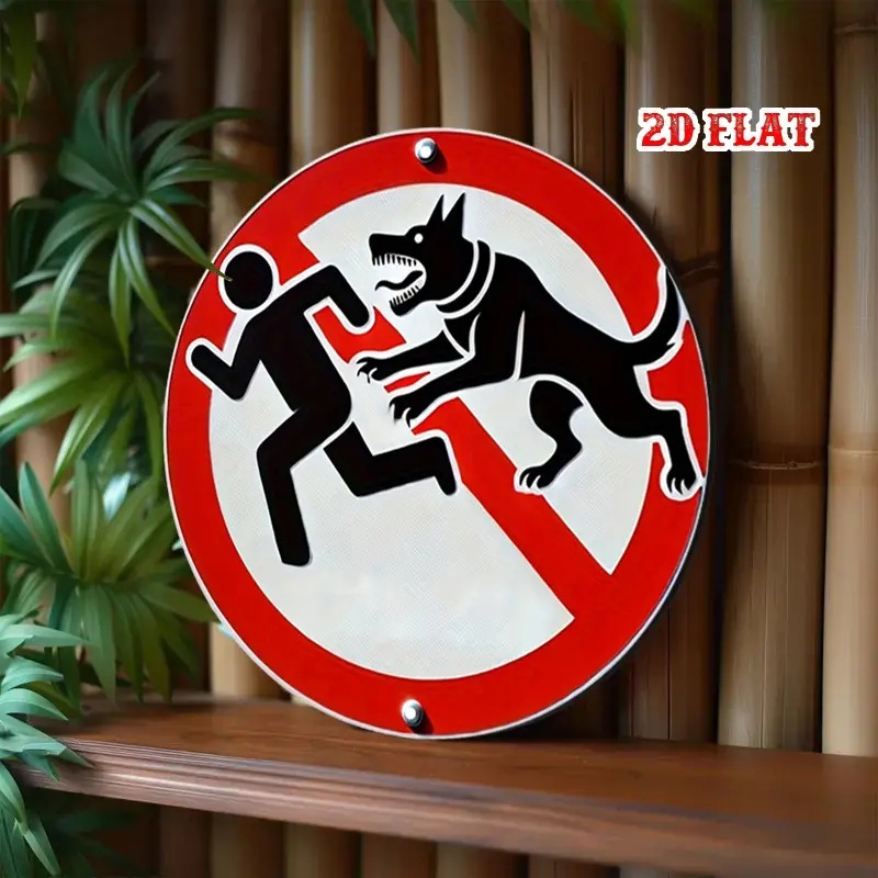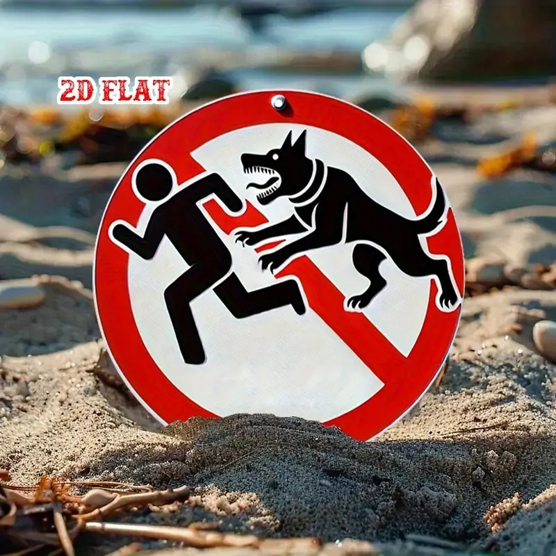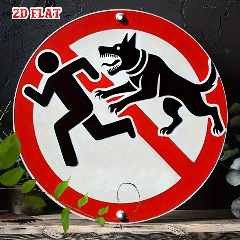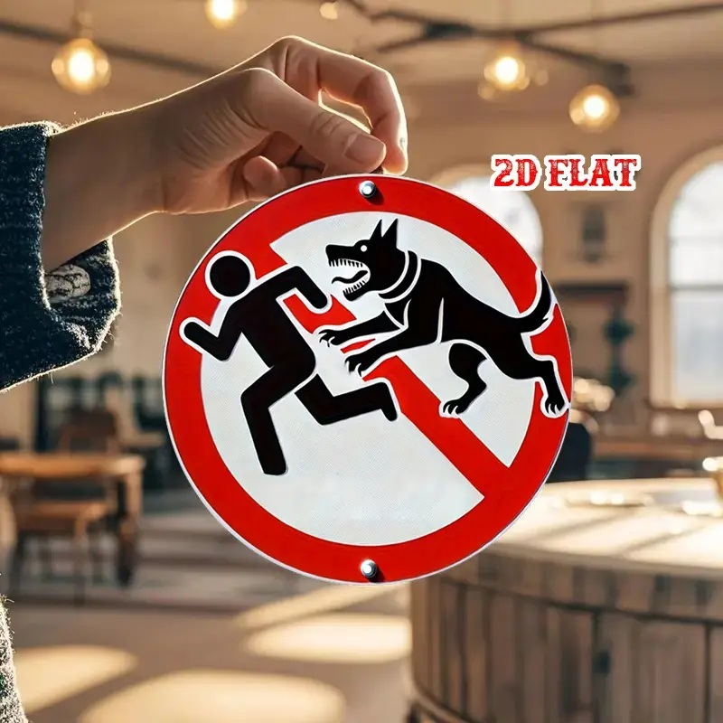 アルミ看板 犬 犬に注意 噛みつき注意 警告 注意 玄関 入口 看板 20×20㎝ 丸型 ガレージ インテリア 雑貨 世田谷ベース アメリカン