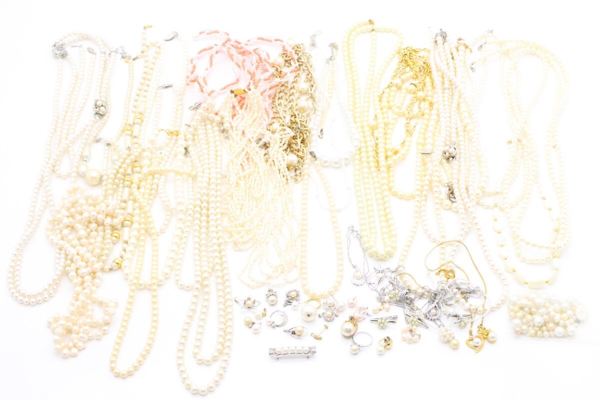 商品説明 | 商品説明を最後までお読みいただいてから入札をお願い致します。 ______________________________ 【発送方法】 発送は「佐川急便」となります。 原則ご入金確認日の翌日以降順次発送となりますが、落札商品が多数ある場合、発送までお時間頂いてしまう可能性があります。商品をお急ぎの方はご注意ください。 ご入金日当日の発送には対応出来ません。 ※沖縄・離島の方は【中継料】が発生し送料が高額になります為(170サイズまでは)ゆうパック着払いにて対応させて頂きます。サイズオーバーの場合、佐川着払いとなります。 パールまとめ 真珠 フェイクあり K14WG ネックレス/イヤリング/ピアス/ブローチ/リング など 総重量:約1.3kg