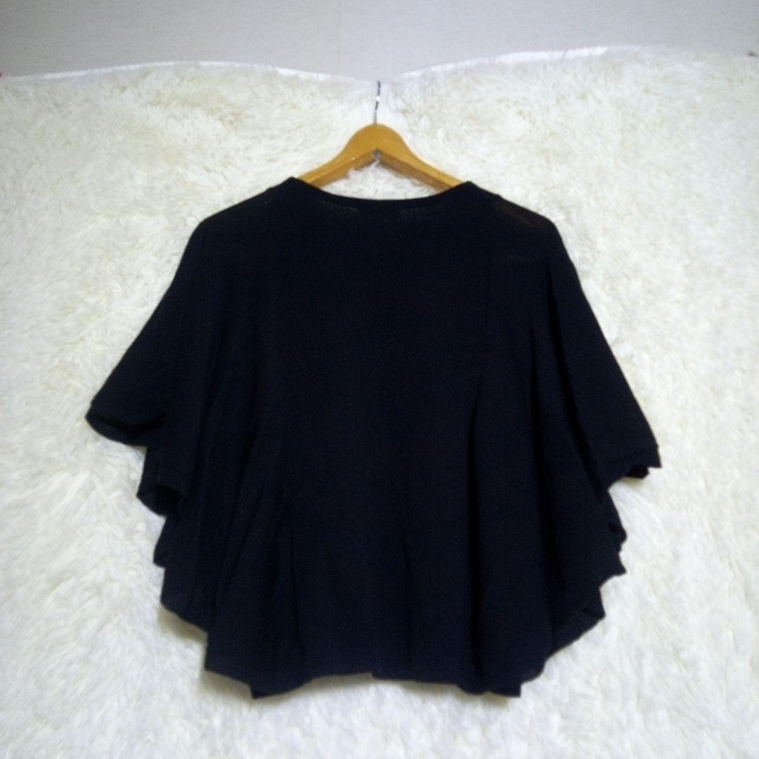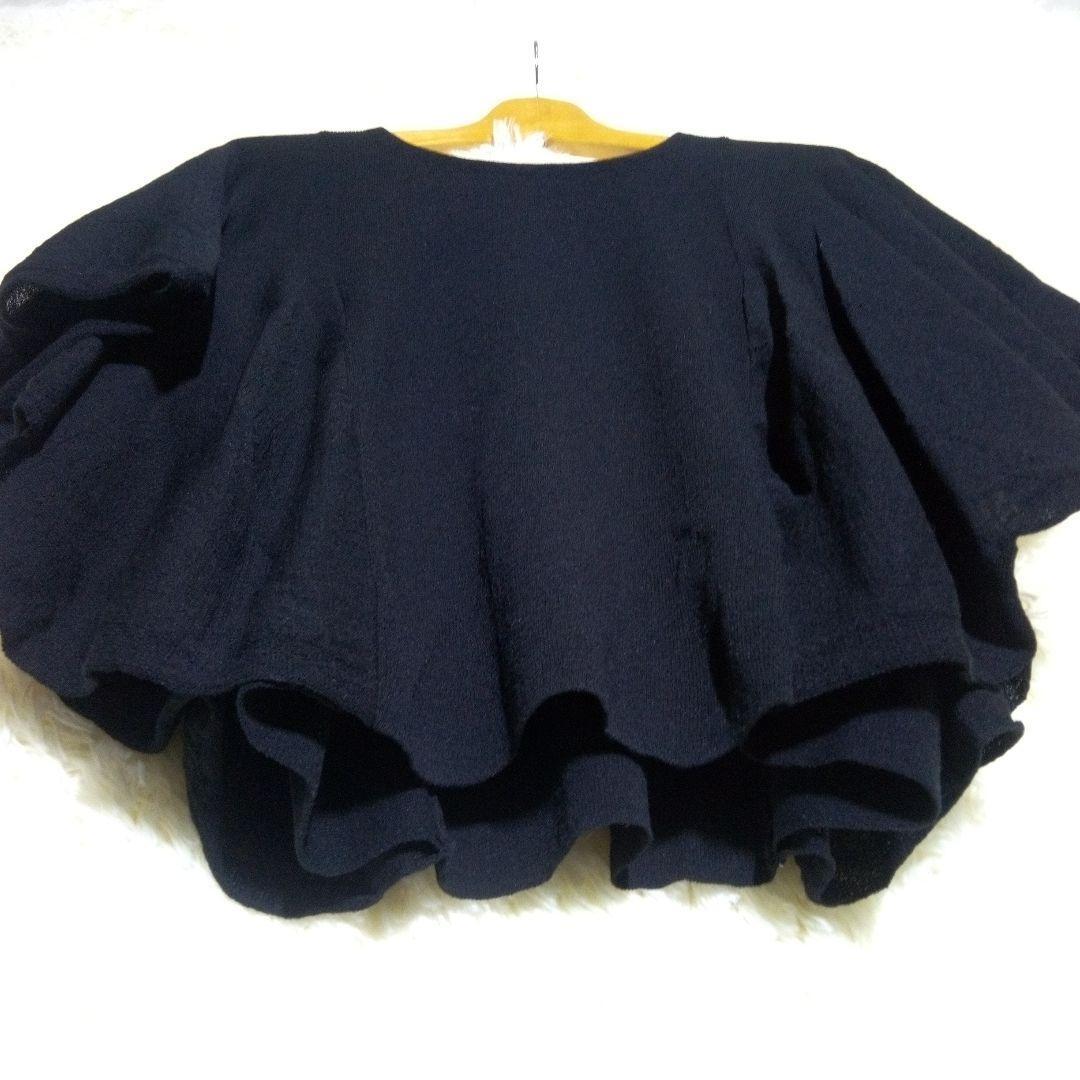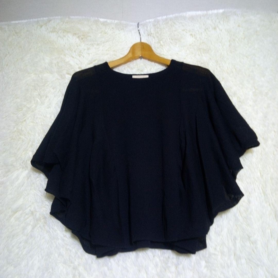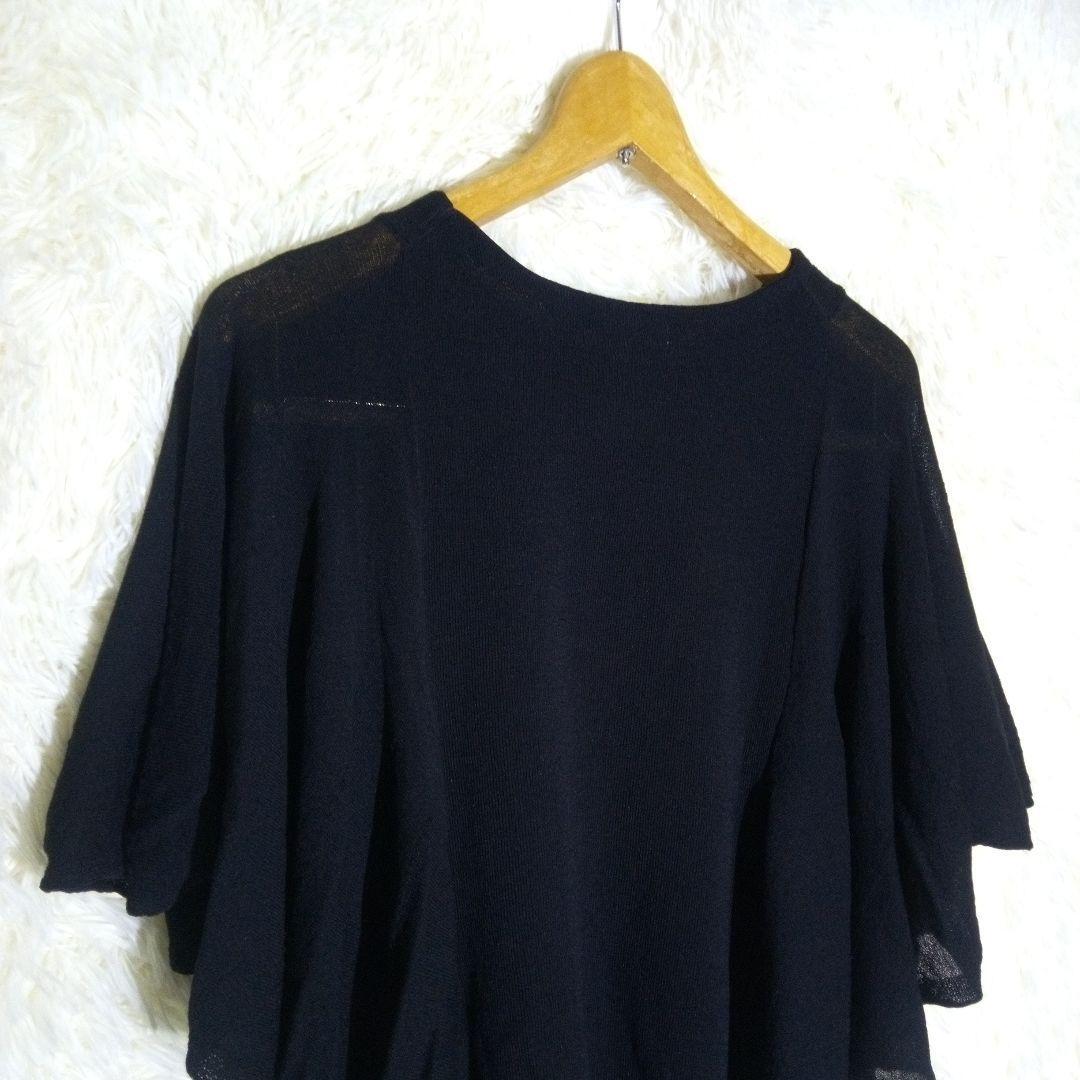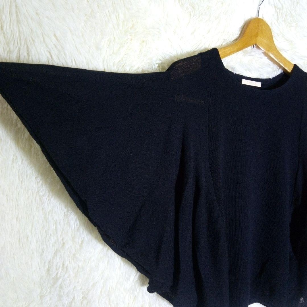 軽量素材のブラックフレアスリーブサマーニット、オーバーサイズデザインで快適な着心地。