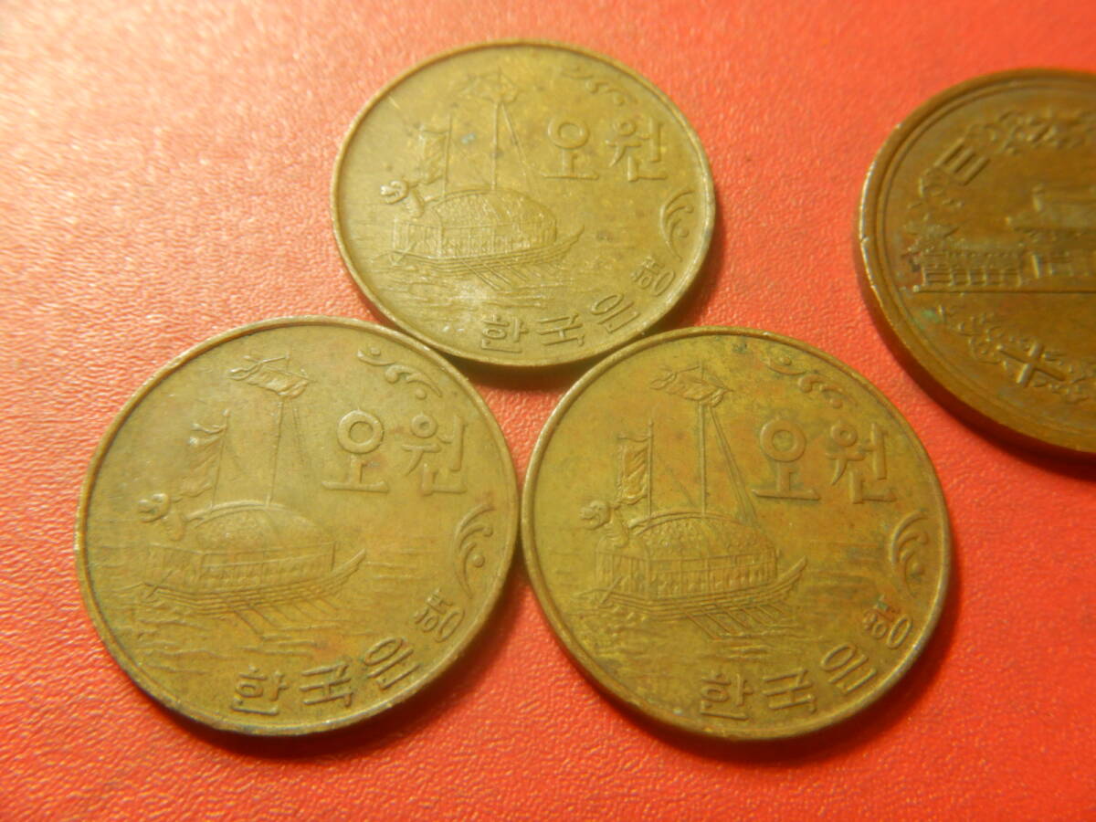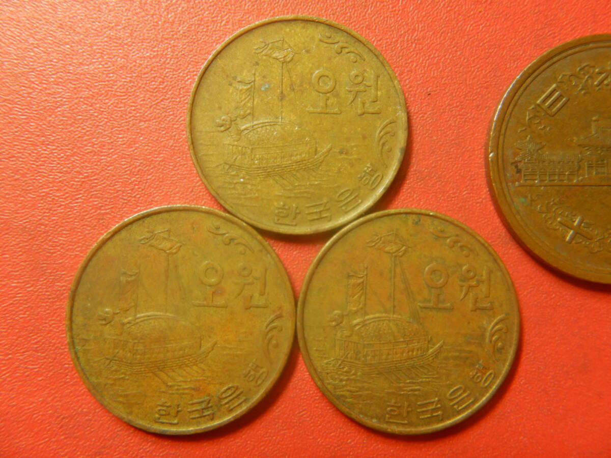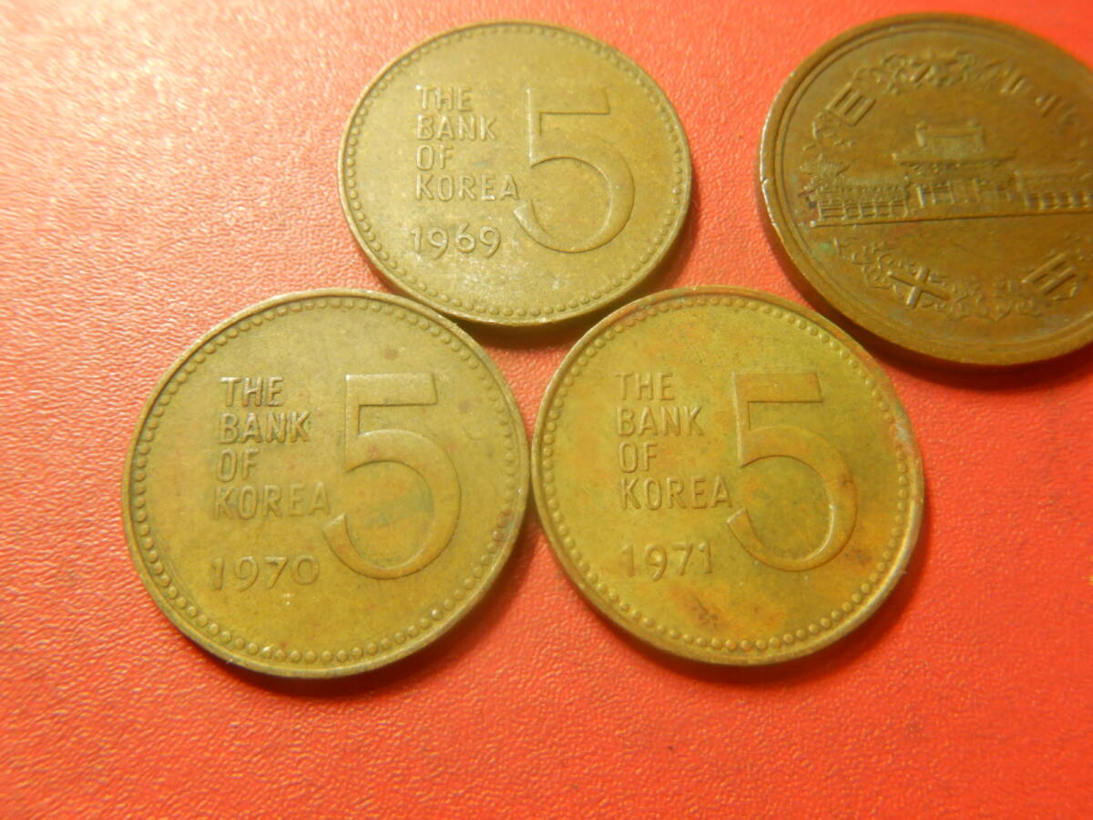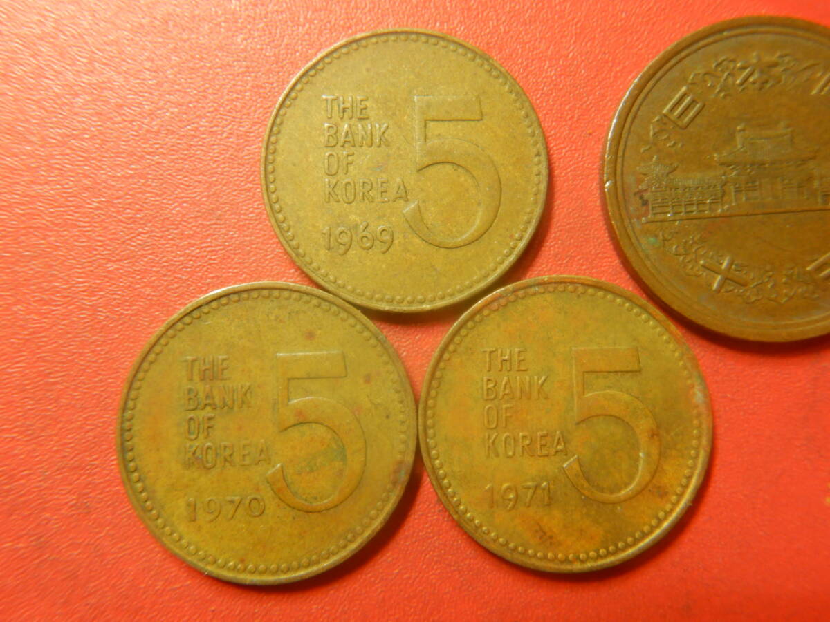 外国・韓国/5ウォン青銅貨・黄銅貨3枚 250728