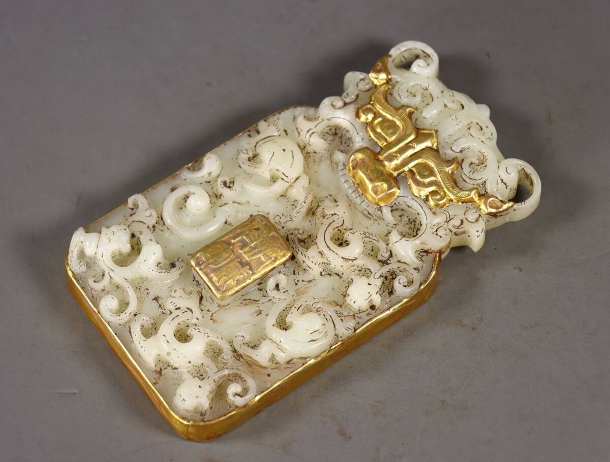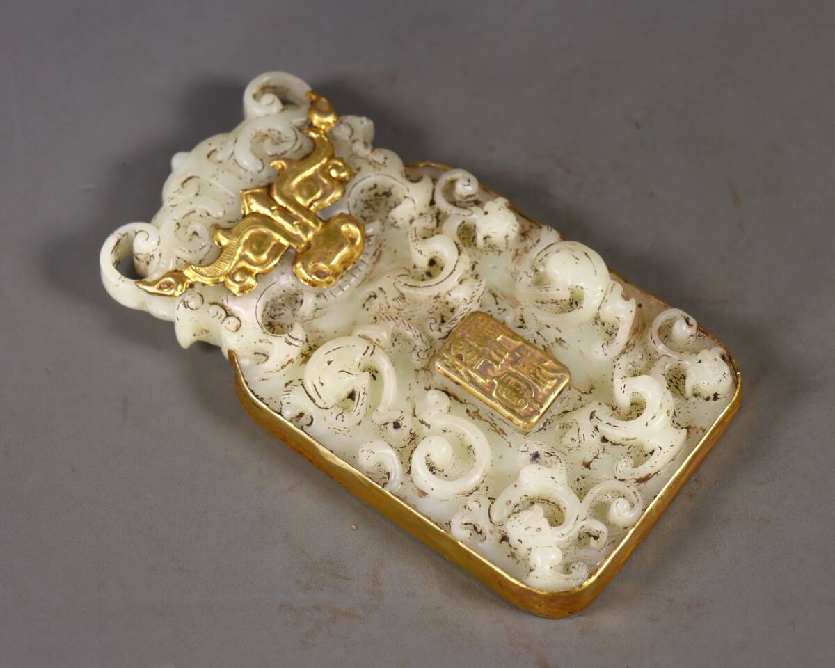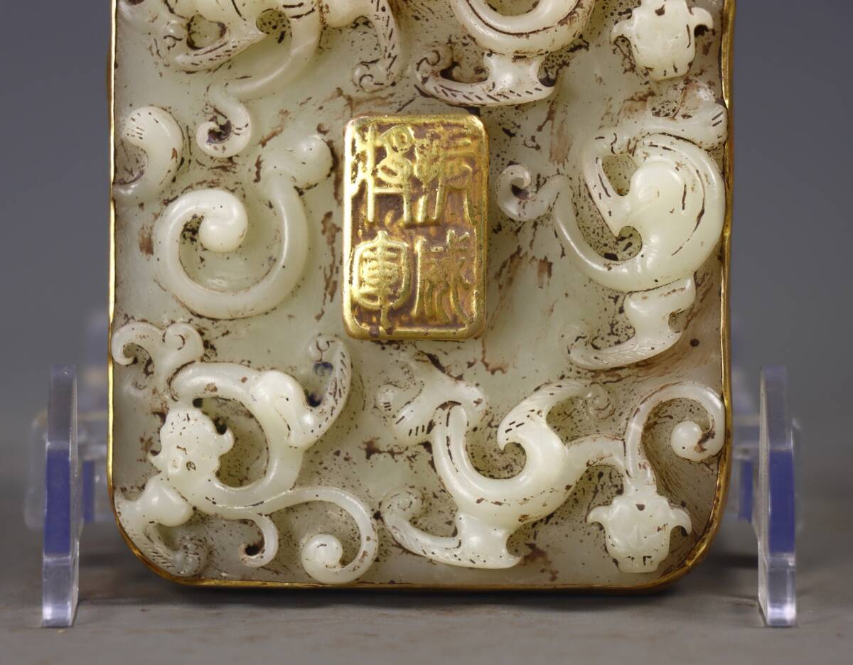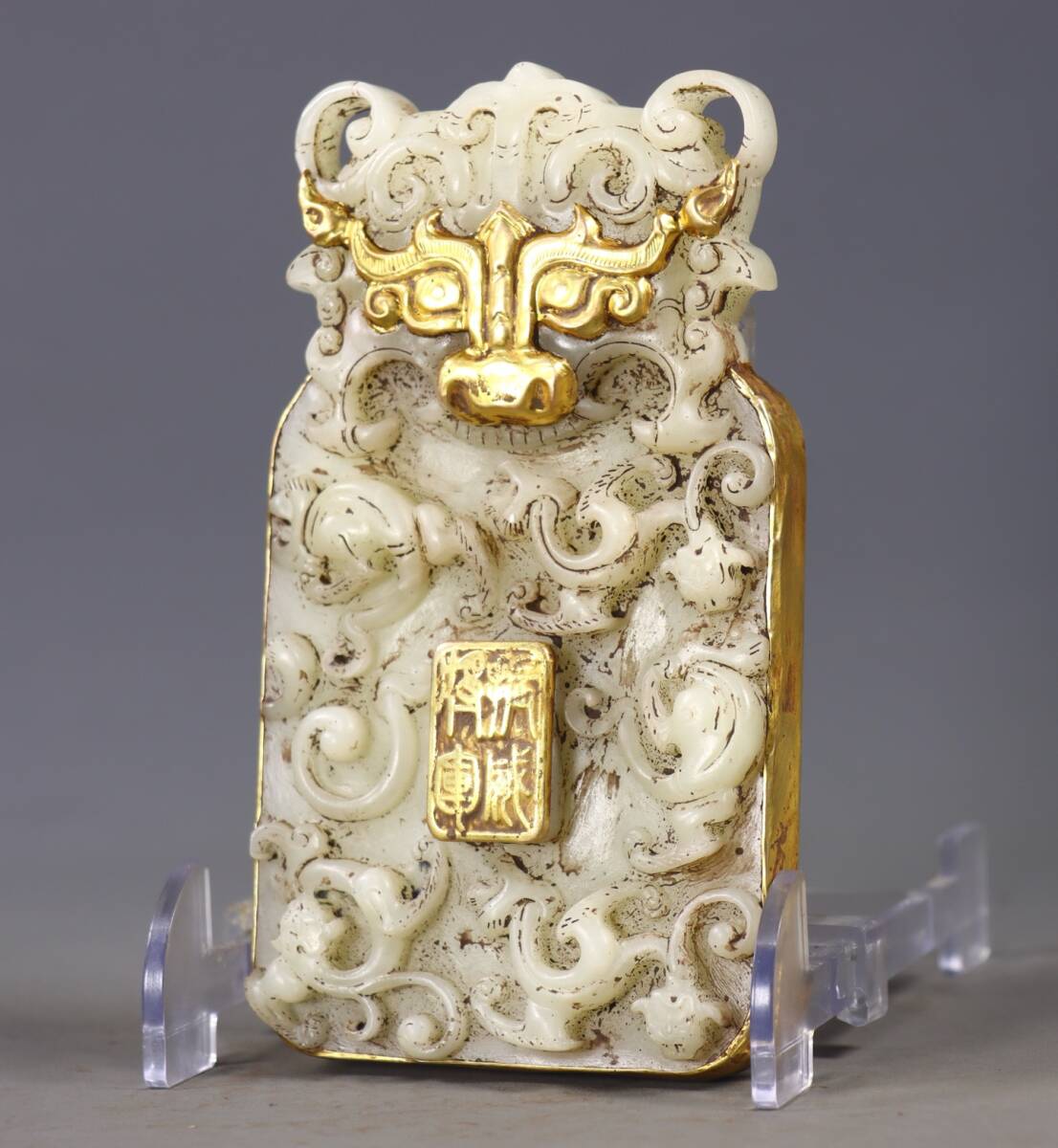 *珍品旧蔵* 清 玉彫 和田玉 包金虎頭權杖 極細工 中国古玩 骨董品 古美味 H48