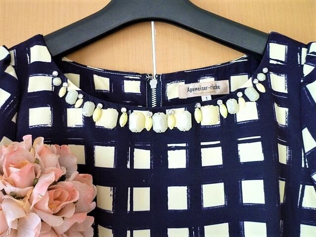 アプワイザーリッシェの可愛らしいワンピースです。 こちらは、委託品ですが、お品物は手元にございますので、ご安心下さいませ。 画像ですと、白っぽく写ってしまいましたが、薄イエローの色地にデザイン柄が 映えて可愛らしく♪首元の装飾デザインもポイントになって、着て頂くと、可愛く 品良く見せてくれるお勧めワンピースです。 サイズは、1です。 平置きの状態で、着丈 約83㎝です。 (素人採寸のため、多少の誤差はお許し下さいませ) 素材は、ポリエステル100%です。 裏地も付いております。 こちらは、5~6回着用のUSED品となります。 USED品としての出品となりますので、完璧品をお求めの方・神経質な方は、 申し訳ございませんが、ご入札をお控え下さいませ。 ノークレーム・ノーリターンでお願いします。 | |