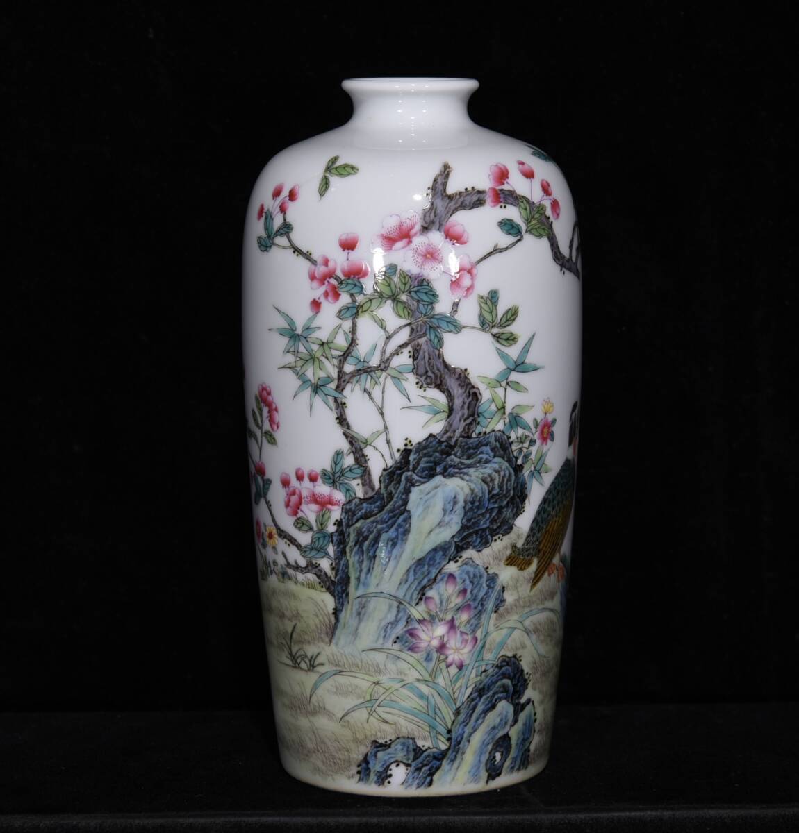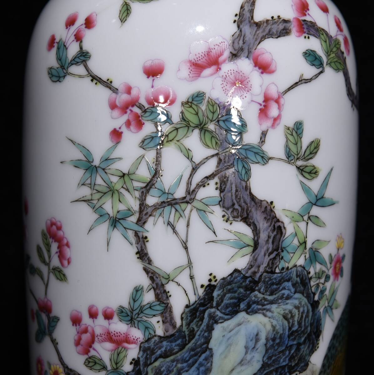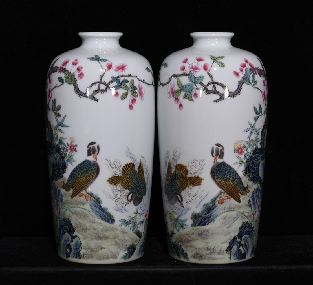 ◆蔵出◆中国古美術 大清雍正年製款 粉彩 花鳥紋賞品―對 精品 細密細工造 置物 擺件 古賞物 骨董 時代物 A06