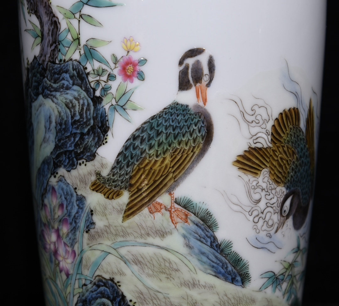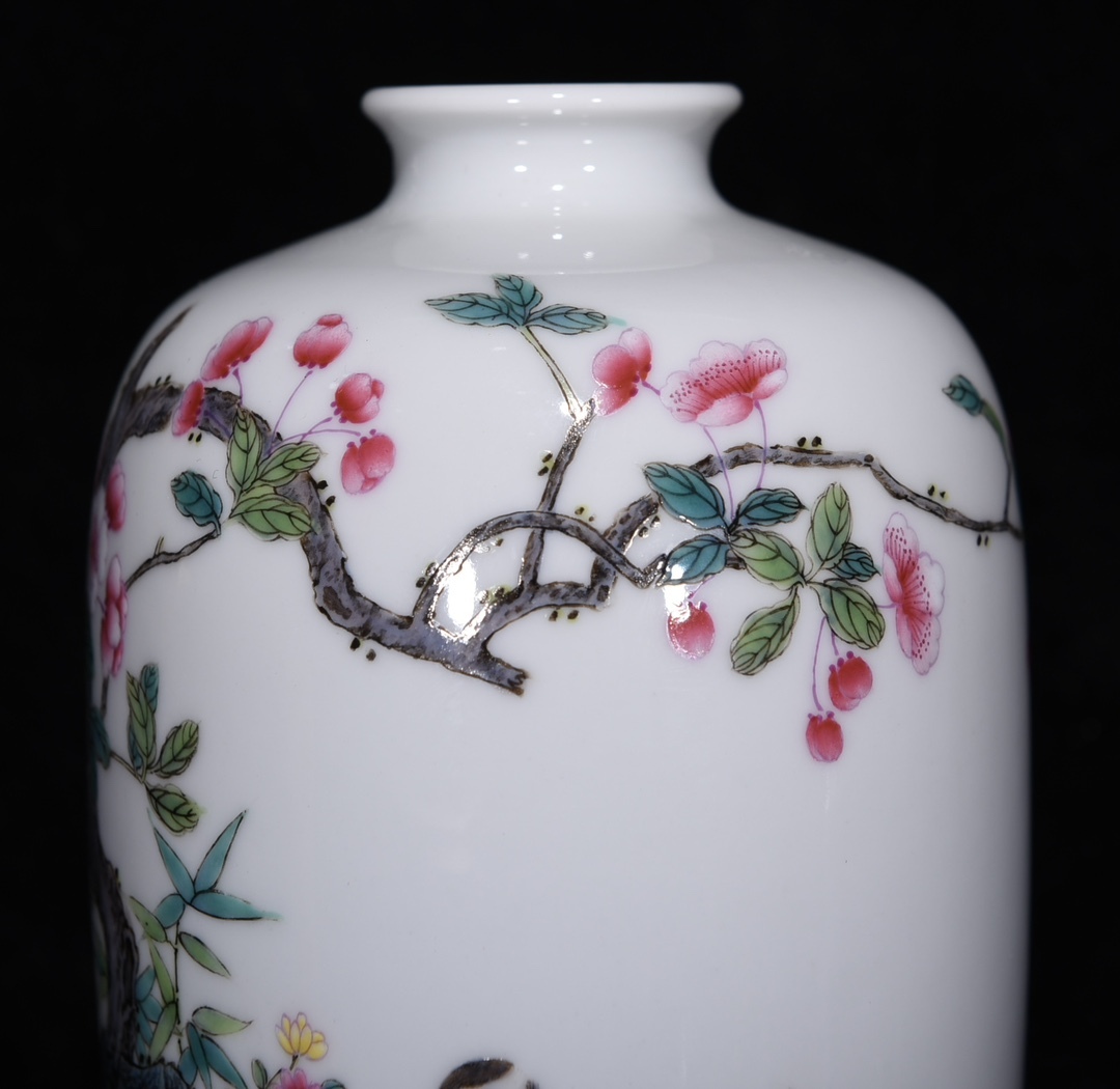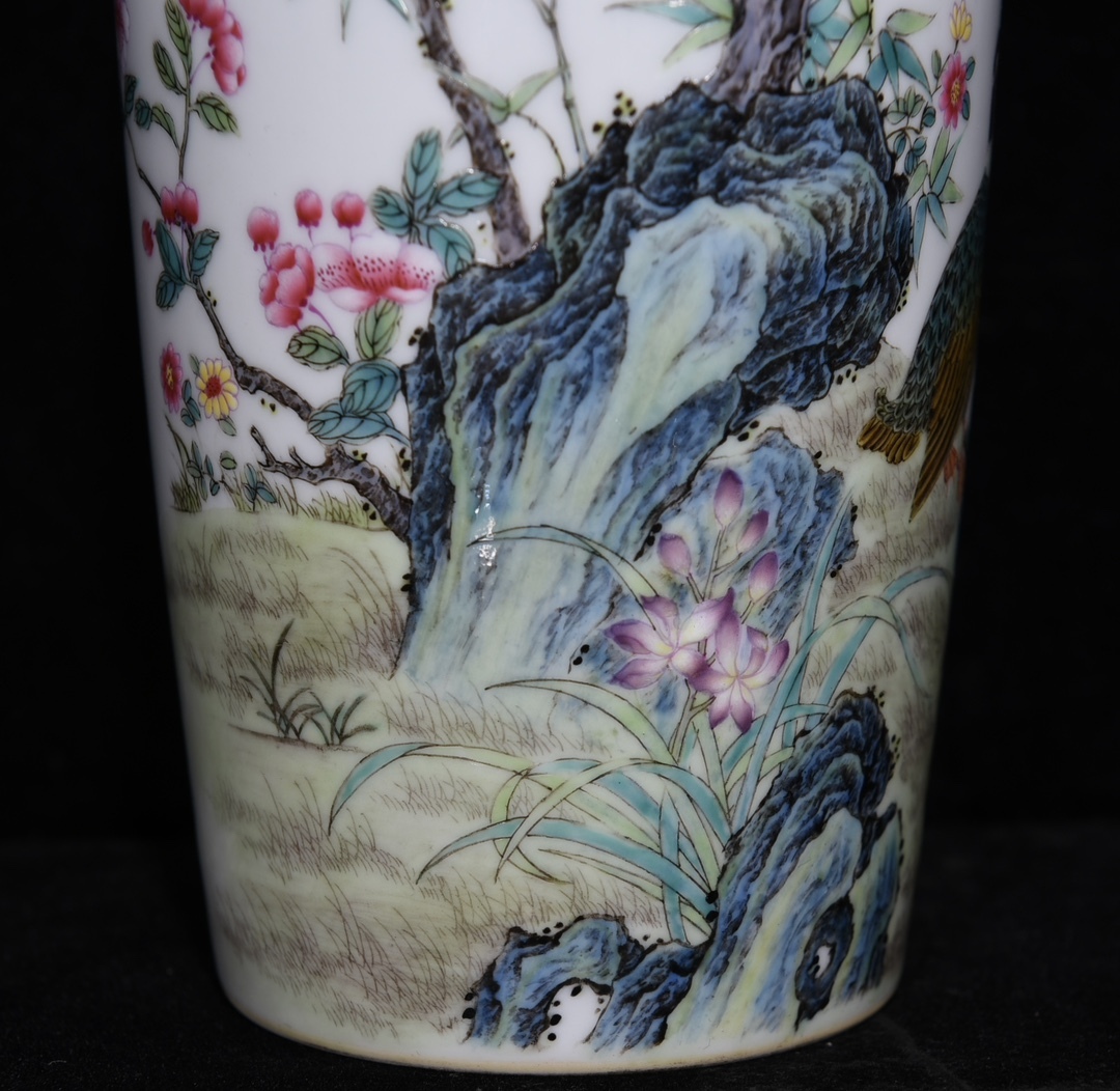 ◆蔵出◆中国古美術 大清雍正年製款 粉彩 花鳥紋賞品―對 精品 細密細工造 置物 擺件 古賞物 骨董 時代物 A06