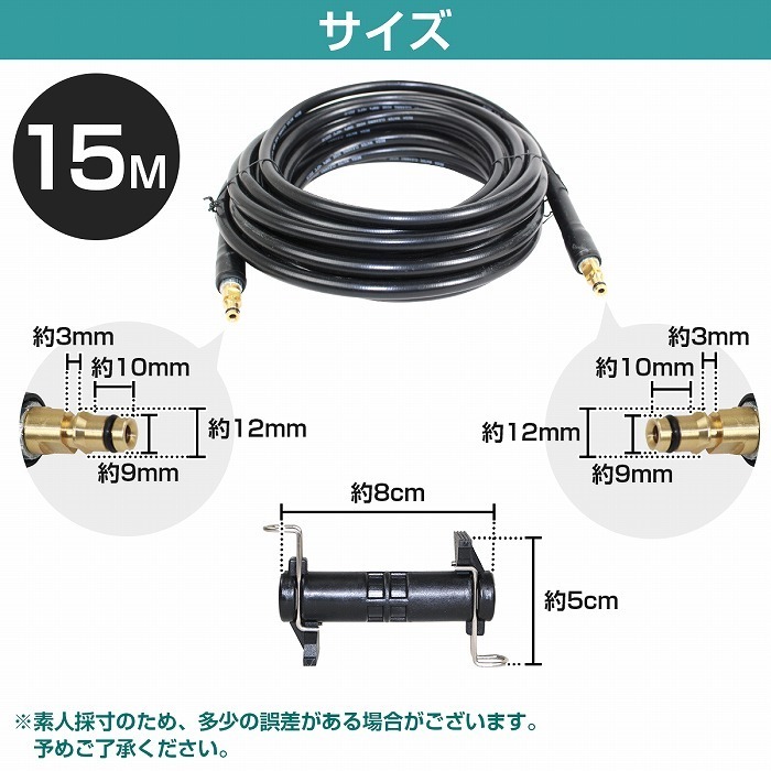 『15m』 ケルヒャー 互換 延長 ホース 高圧洗浄機 アダプタ クイックタイプ コネクタ付き Kシリーズ対応 k2 k3 k4 k5 k6 k7