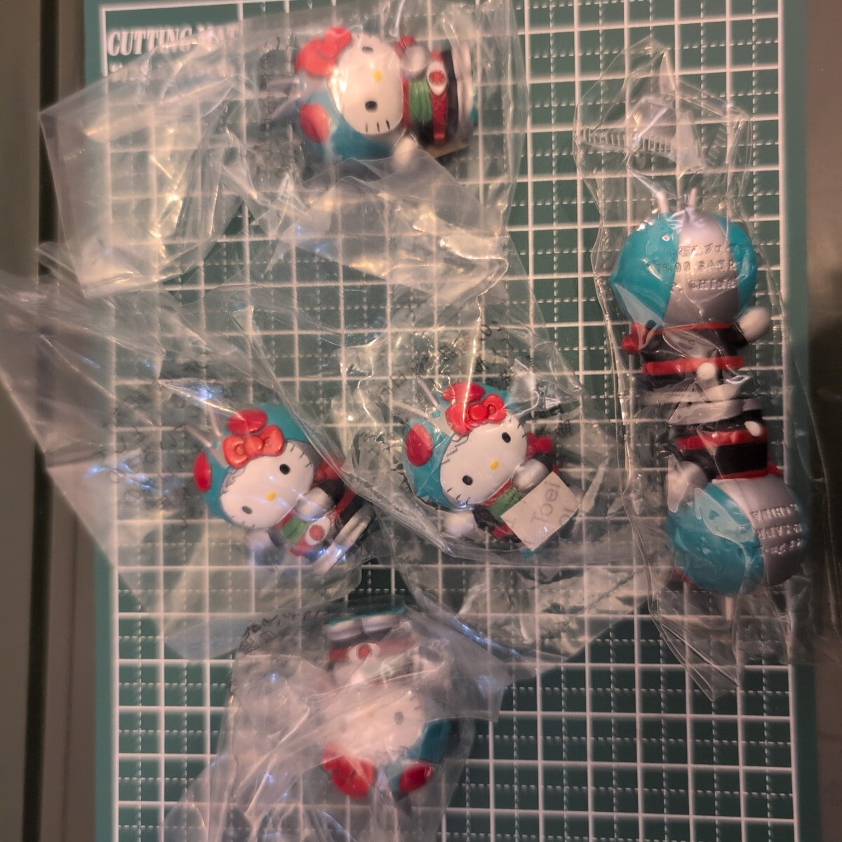 キティちゃんと仮面ライダーのミニソフビです。