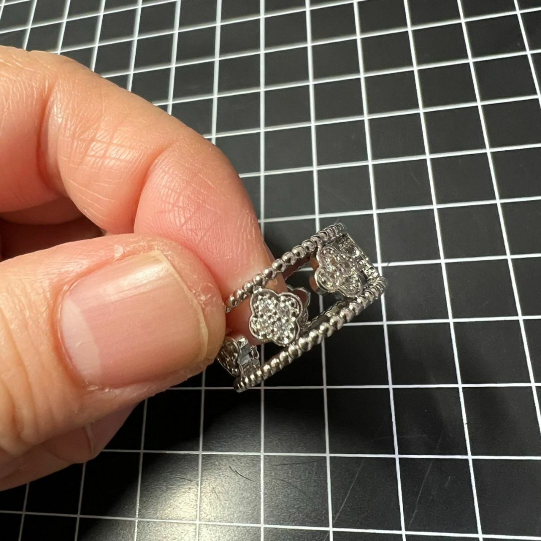 4つの花弁にはキラキラと輝くジルコニアが綺麗な指輪です。