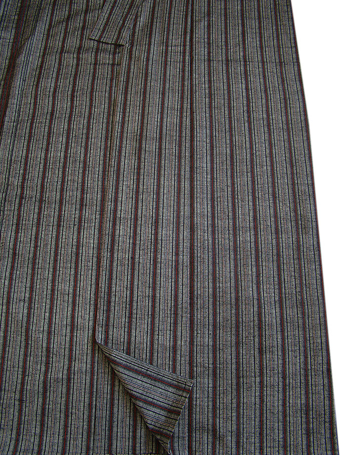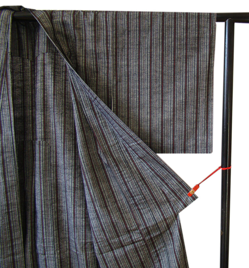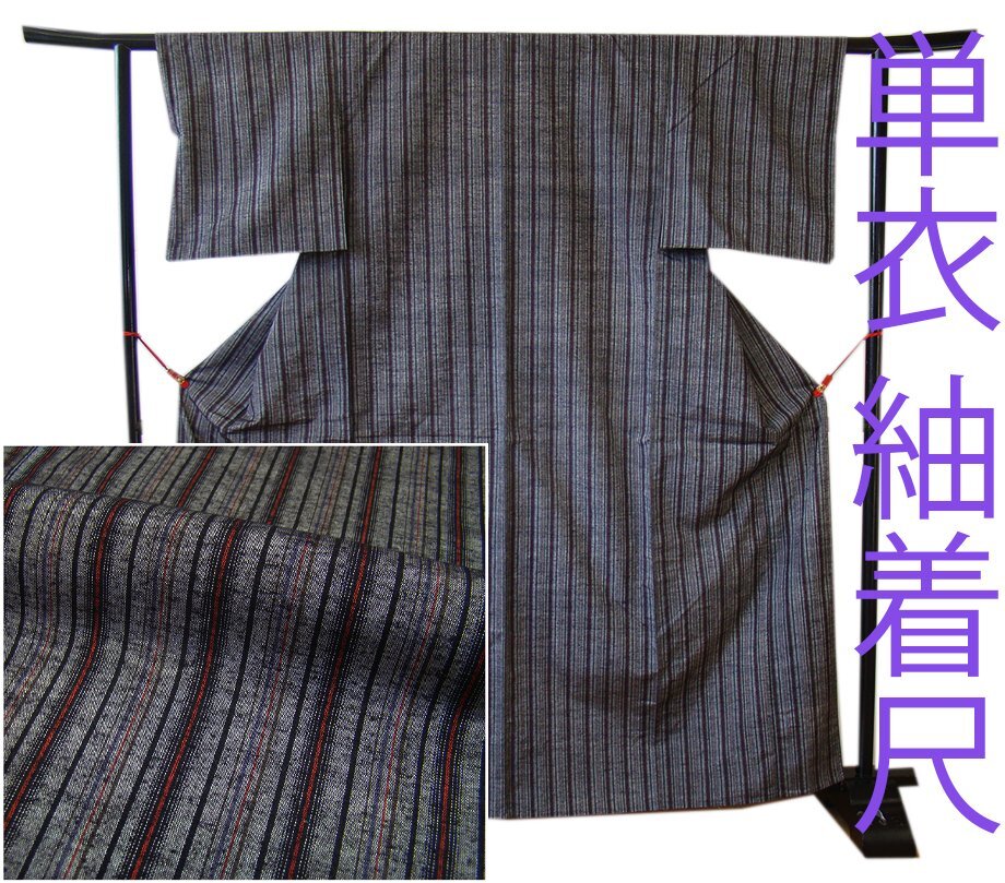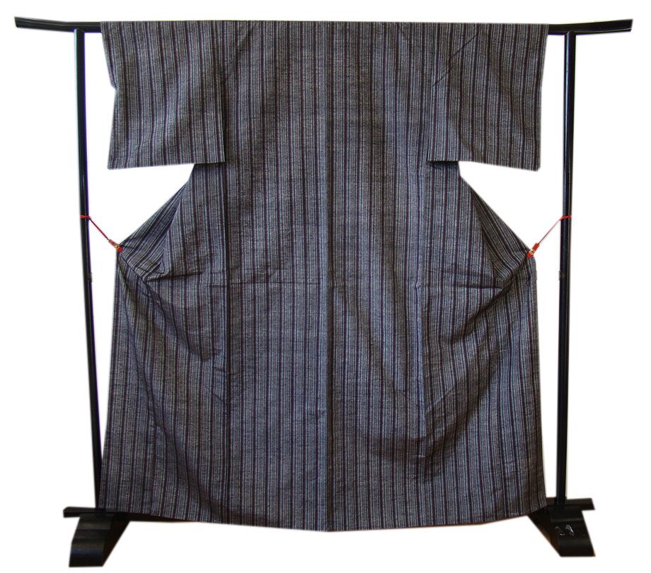 | 商品説明 | こちらのお品は「単衣」ですので5月、6月、9月にお召頂ければと思います。 着物には、大きく分けて「袷(あわせ)の着物」と「単衣(ひとえ)の着物」と「夏着物」があります。 反物(表地)を着物に仕立てるときに、裏地類をつけるものを袷の着物、 つけないものを単衣の着物と呼び、胴裏や八掛といった裏地がつかない一枚ものの着物です。 また裏地がないため、座る時などにヒップのラインが目立たないよう、 居敷当て(いしきあて)の生地をつけることもあります。 共布の居敷当て1巾付いております。 とてもしなやかなさらりとした手触りの味わい深く着心地良い単衣仕立ての紬地、 渋いグレー色地に黒、赤色の縞柄の織柄が粋な着物姿を演出しております。 また、バチ衿仕立てとなっております。 |