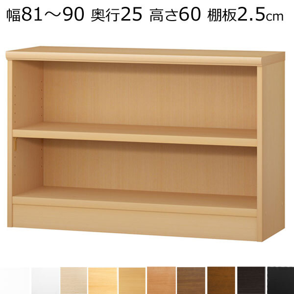 【特徴】幅15~70cm(棚板厚み1.7cm)(棚板厚み2.5cmは~幅90cm)まで1cm単位でオーダーメイド、本棚です。高さ49・60・70・80・88・117・135・150・178・211cmの10サイズ、奥行きは19・25・31・40・46cmの5サイズ、カラーは12色。【本体外寸】幅81~90×奥行き25×高さ60cm(約)【棚板枚数】1枚【幅の内寸】全体の幅サイズから3.6cmを引いた寸法となります。※側板(縦の両脇の板)の厚みは2.5cm 棚は移動可能で穴から穴までの高さ(ピッチ)は3cm【色・主材】木目調ナチュラル・木目調ブラウン・つや消しアイボリーホワイト・つや消しブラック色など12色・プリント紙化粧繊維板【生産国 】JAPAN※お客様組み立て商品です。(組み立て家具です)【お詫び】北海道・沖縄・離島は別途送料がかかります。【井崎店長から一言】特別注文のため、ご注文後のお取り消しがお受けすることが出来ません。サイズの確認を十分にお願いいたします。す。