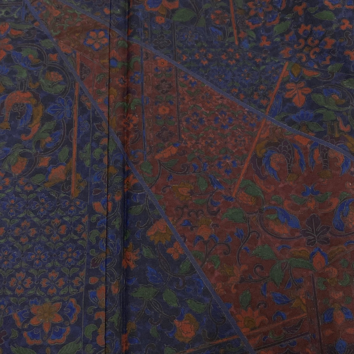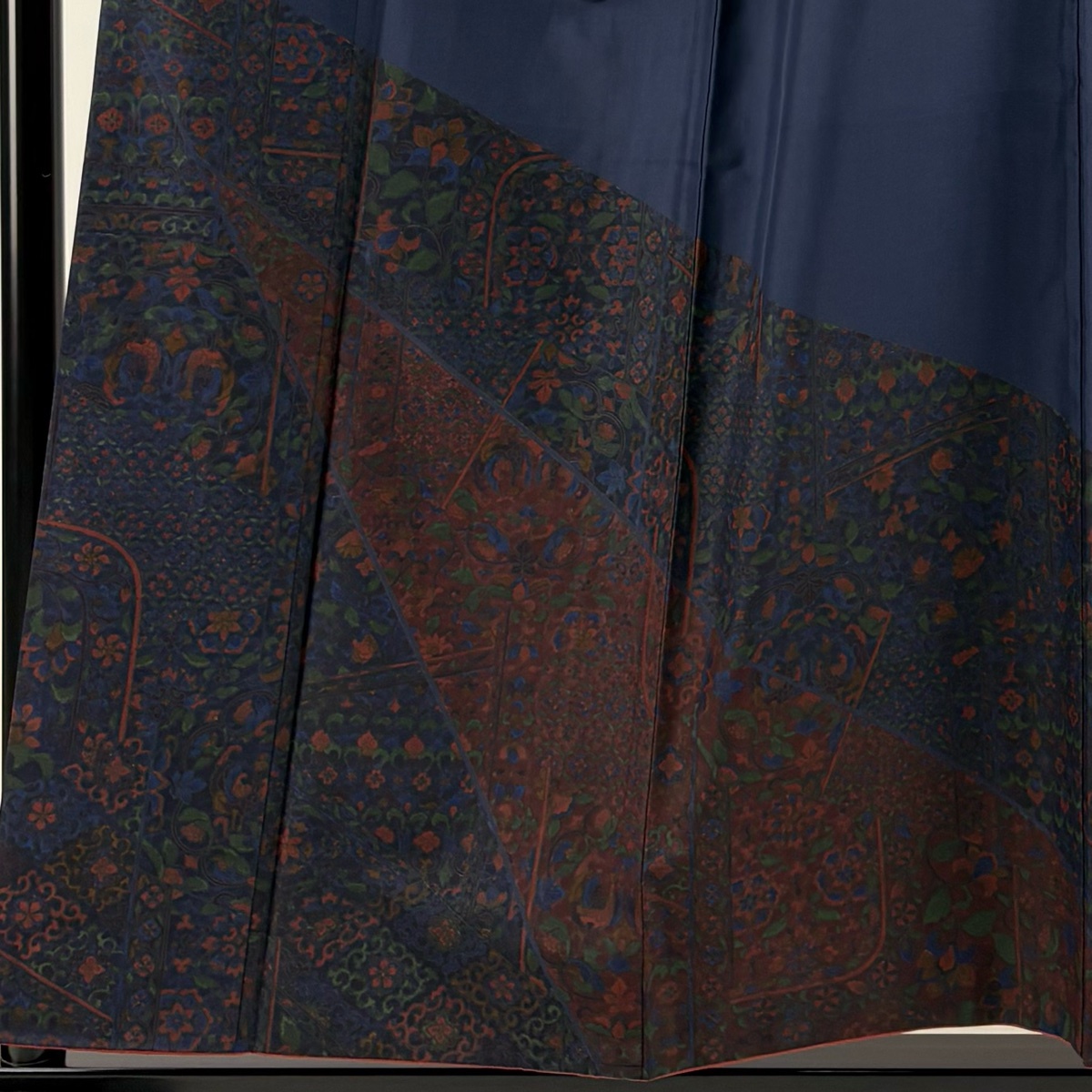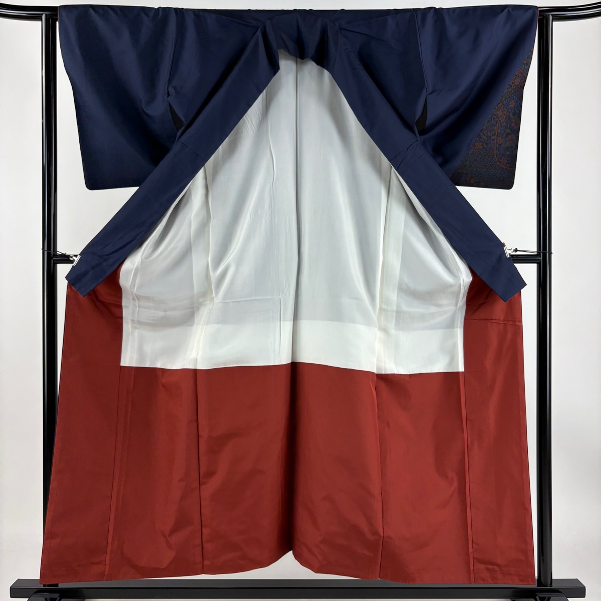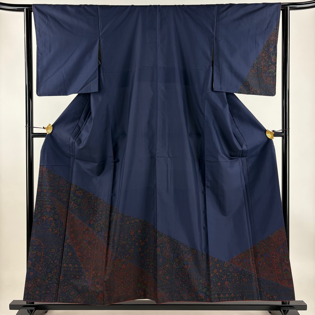 | 付下げ 秀品 紬地 草花 向かい鳥 濃紺 袷 身丈155 裄丈63 S 正絹 【中古】 |