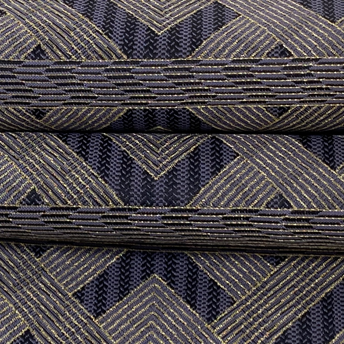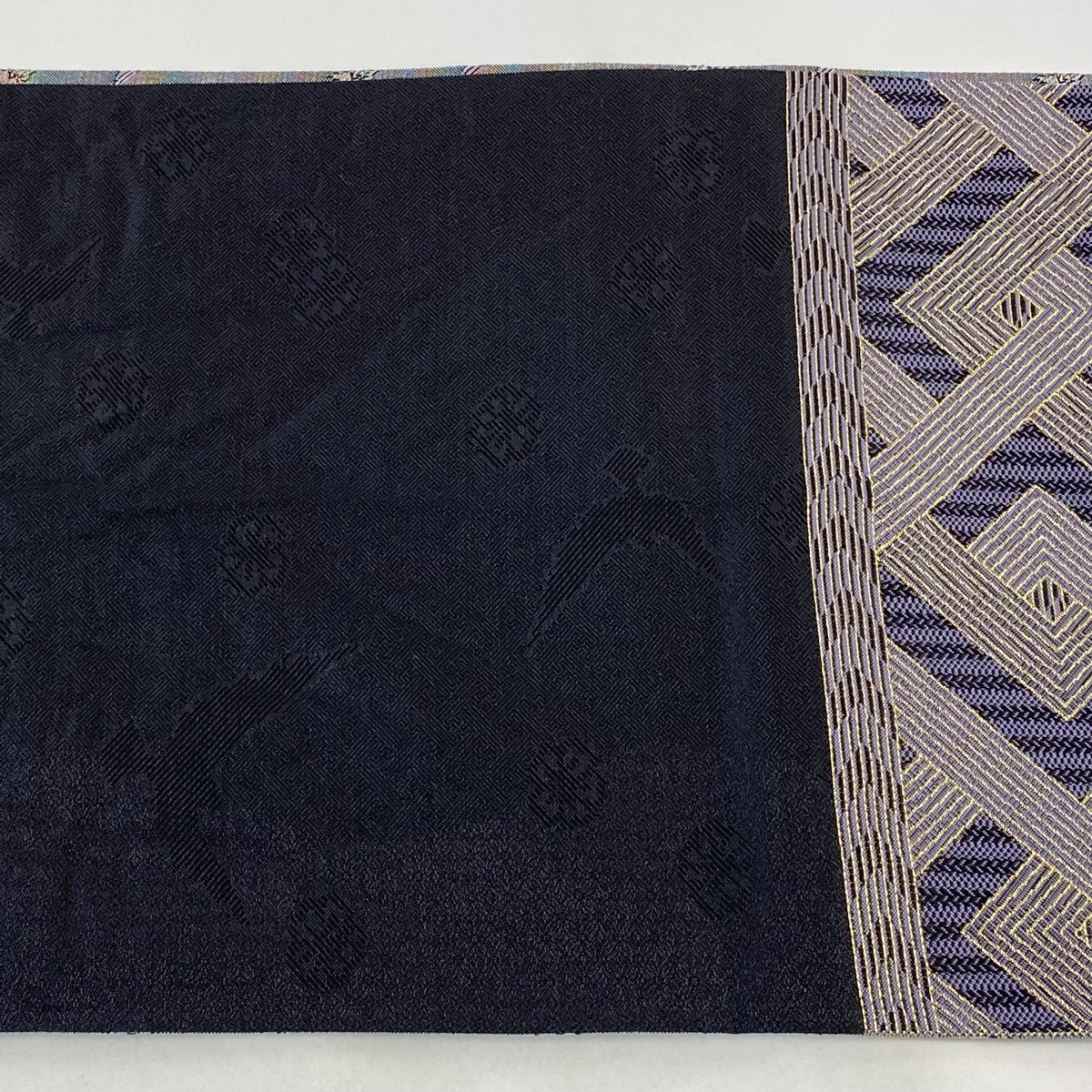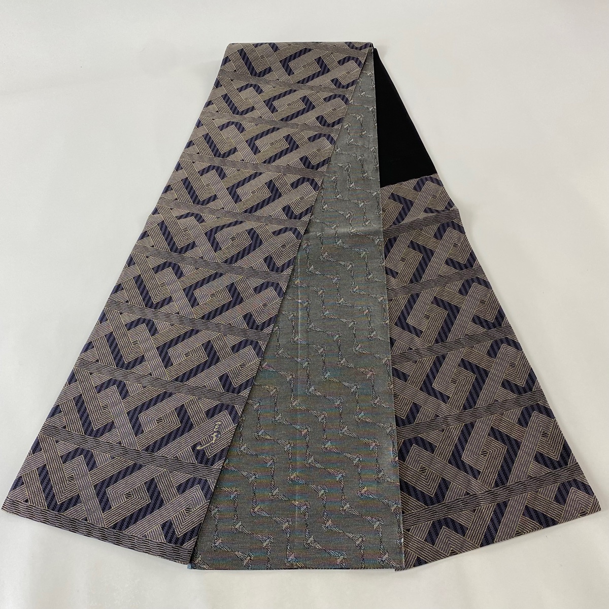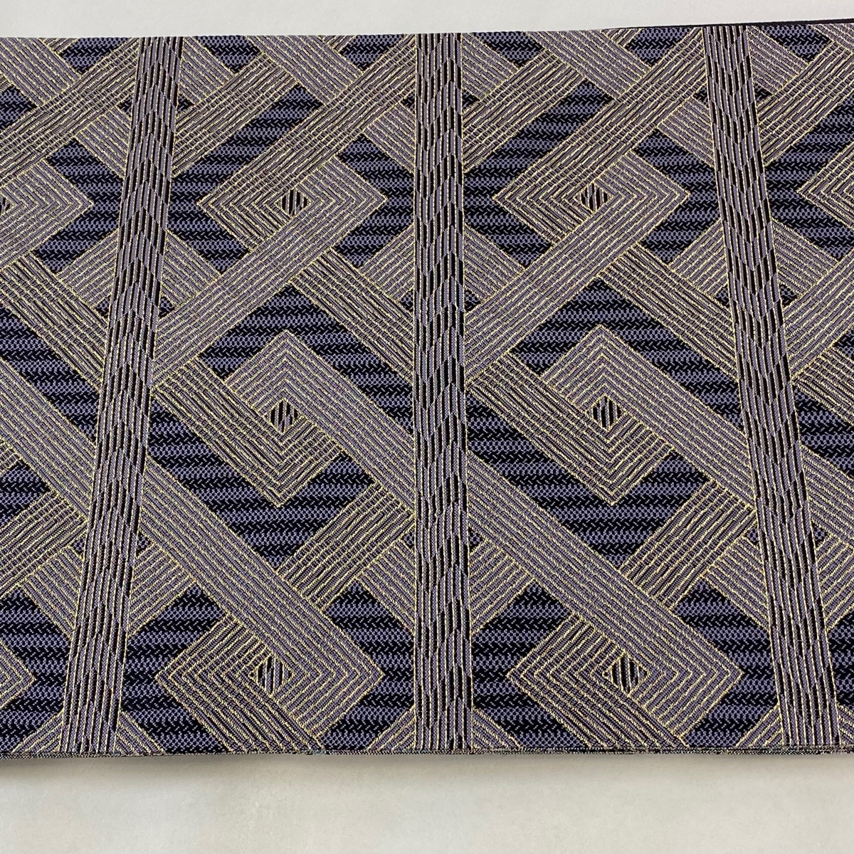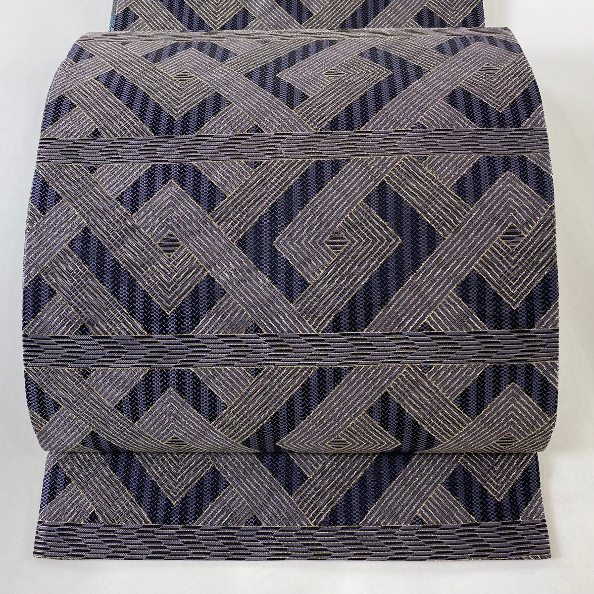 | 袋帯 美品 逸品 斉藤三才 落款 段縞 幾何学模様 金糸 紫 六通 正絹 【中古】 |