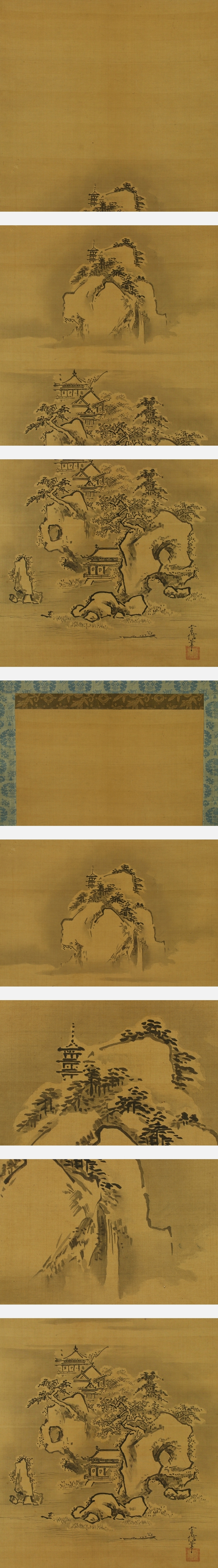 | №2505036【模写】狩野常信【山水図】◆絹本◆合箱◆極め有◆掛軸 | |