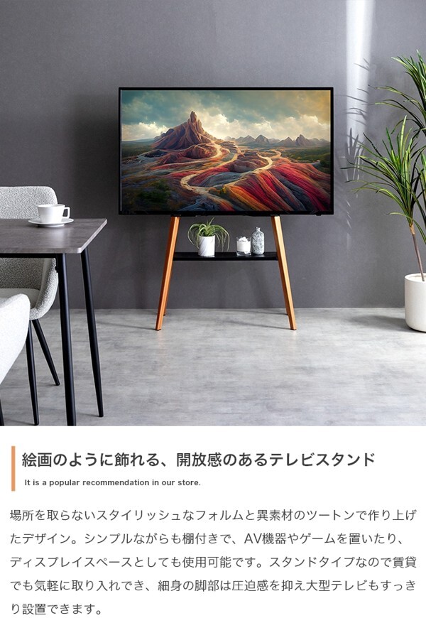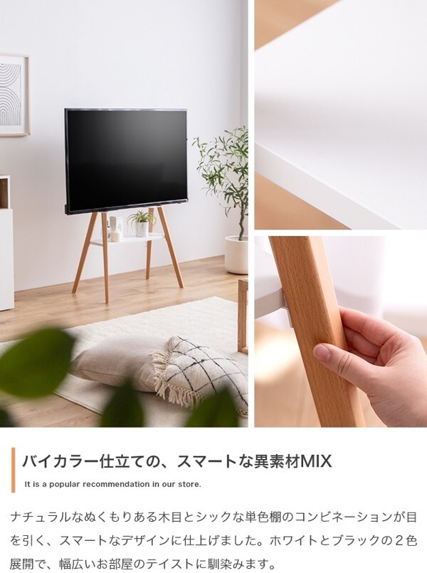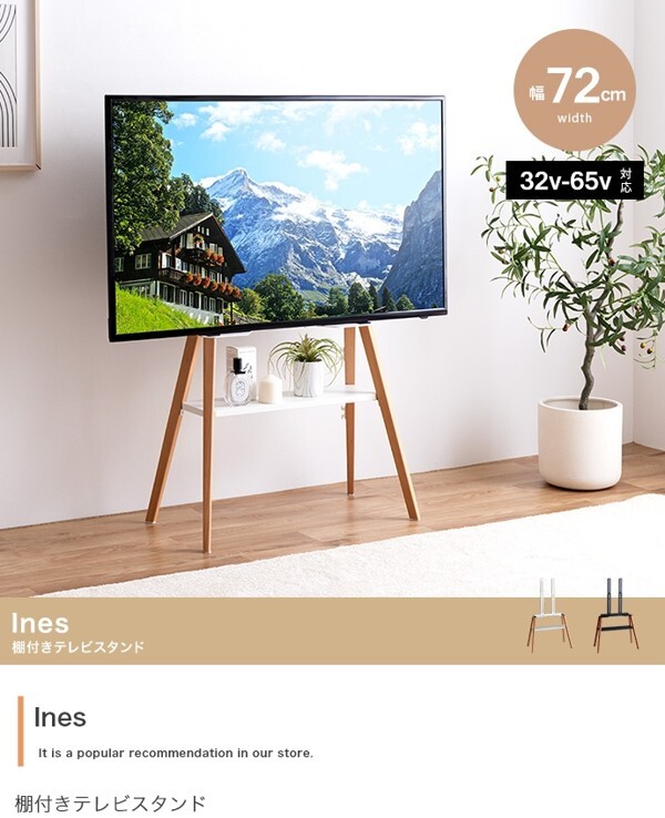 ※現在ご覧の商品ページはホワイトのご購入ページとなります。 ヤフオクの仕様上単一ページに複数バリエーションを掲載することができませんので、他バリエーションが希望の場合は別ページでご購入お願い致します。 場所を取らないスタイリッシュなフォルムと異素材のツートンで作り上げた『Ines』テレビスタンド。 シンプルながらも棚付きで、AV機器やゲーム、スピーカーを置いたり、ディスプレイスペースとしても使用可能。 イーゼルタイプのおしゃれなデザインで、細身の脚部は圧迫感を抑え大型テレビもすっきり設置できます。 配達業者を指定いただくことはできません。 沖縄・離島に関しましては、別途配送料が必要となります。 北海道への配送も別途配送料が必要になる場合がございます。 ※別途送料が発生する場合は後ほどご連絡させていただきます。 タイミングによっては在庫切れの場合があります。
