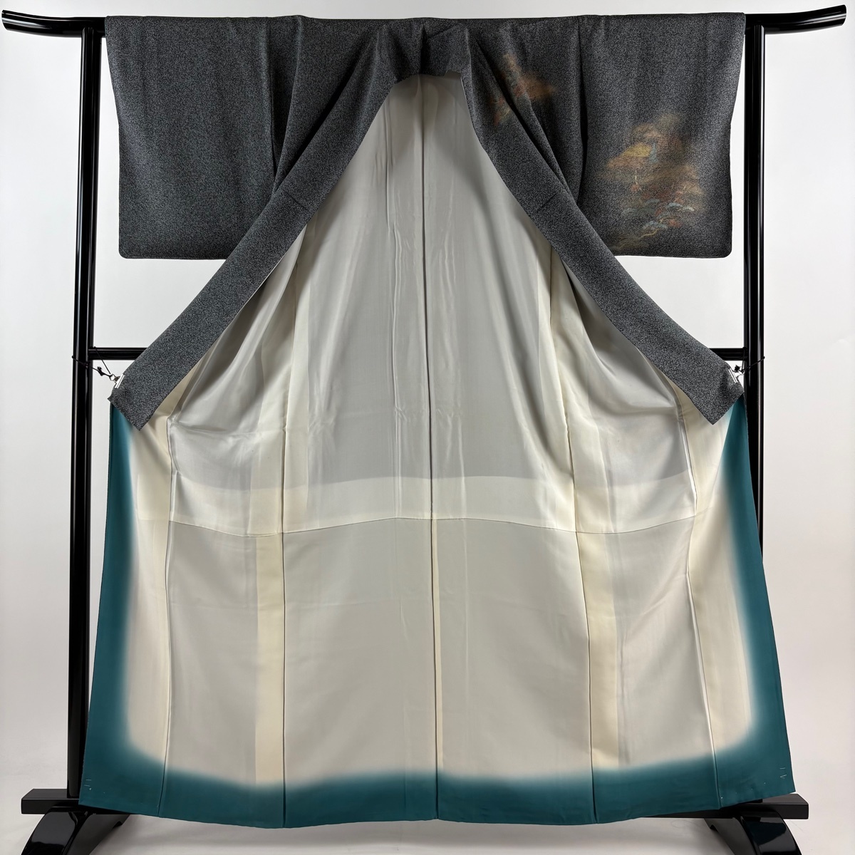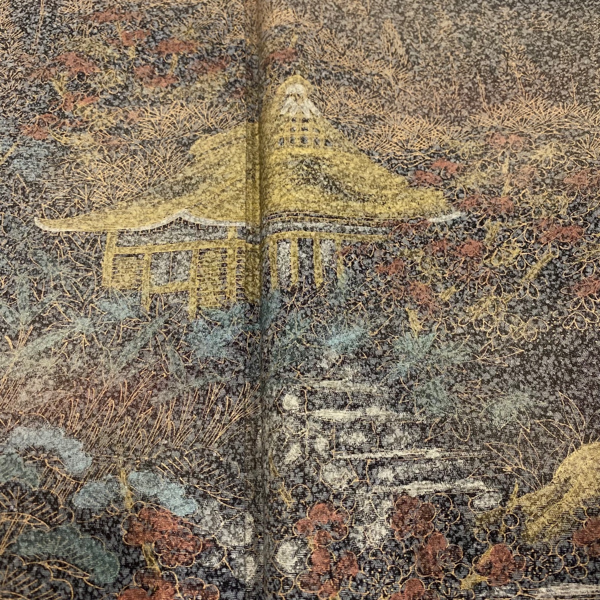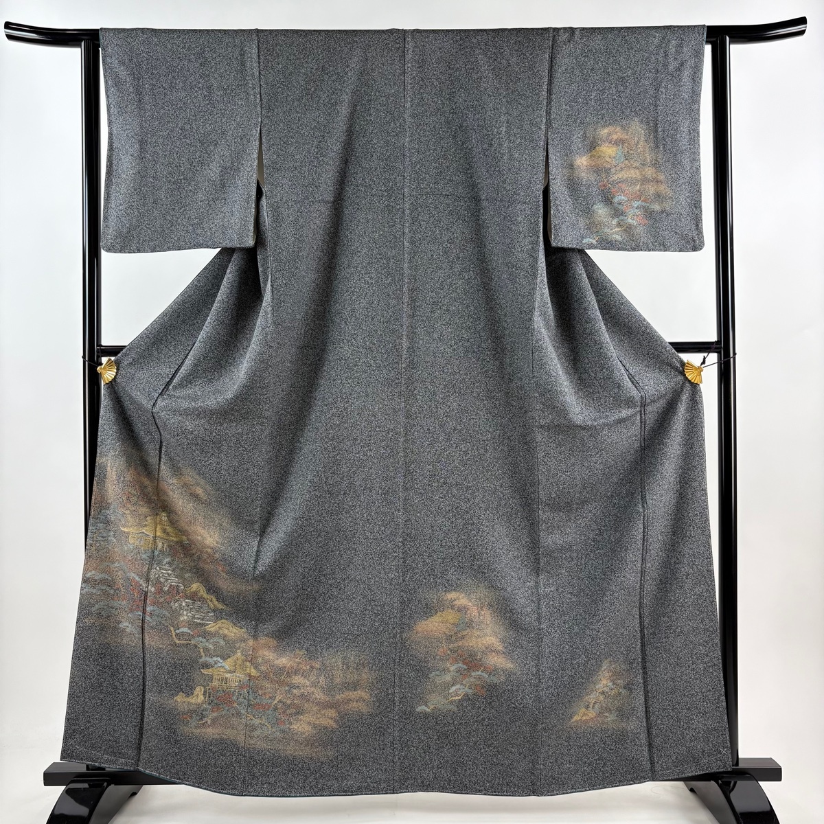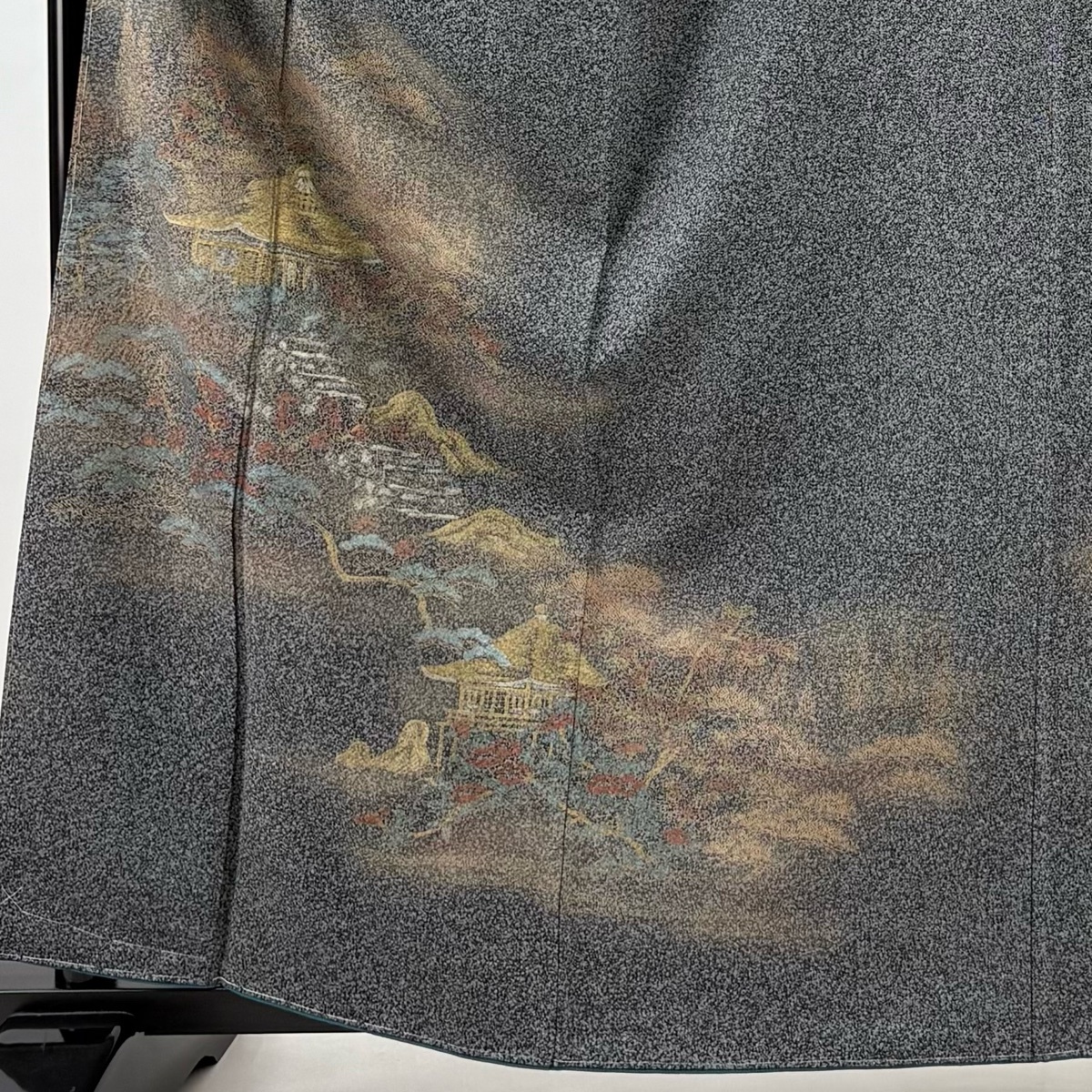| 訪問着 秀品 建物 松 金彩 黒灰 袷 身丈161.5 裄丈62 S 正絹 【中古】 |