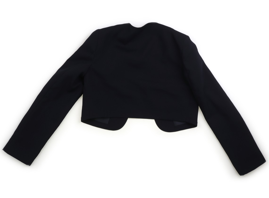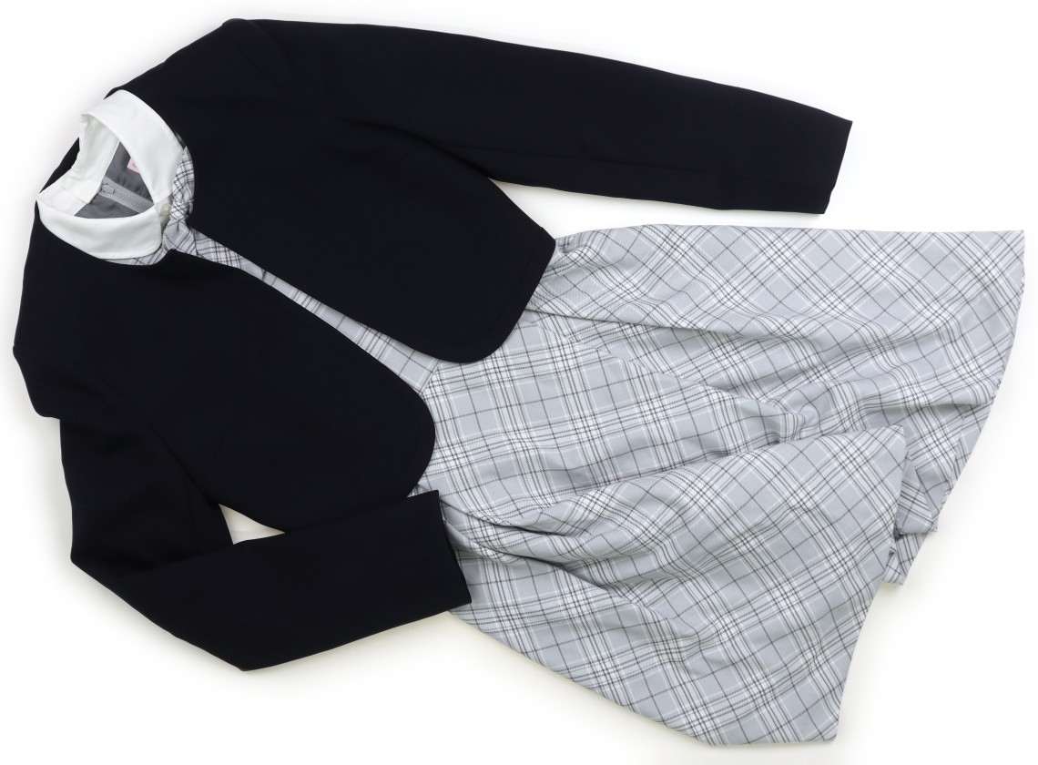 ボレロ型ジャケットとワンピースのセット。実際のサイズ表記は165cmです。ジャケット:総裏付き。ポリエステル素材。肩パッドあり。ポケットなし。左胸に2か所小さな針穴あり。ワンピース:ポリエステル・レーヨン素材。見頃のみ裏付き。後ろファスナー開き。リボンは着脱可能です。あまり使用感のない良品です。