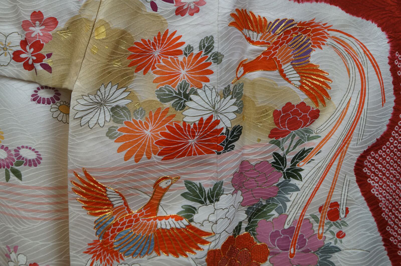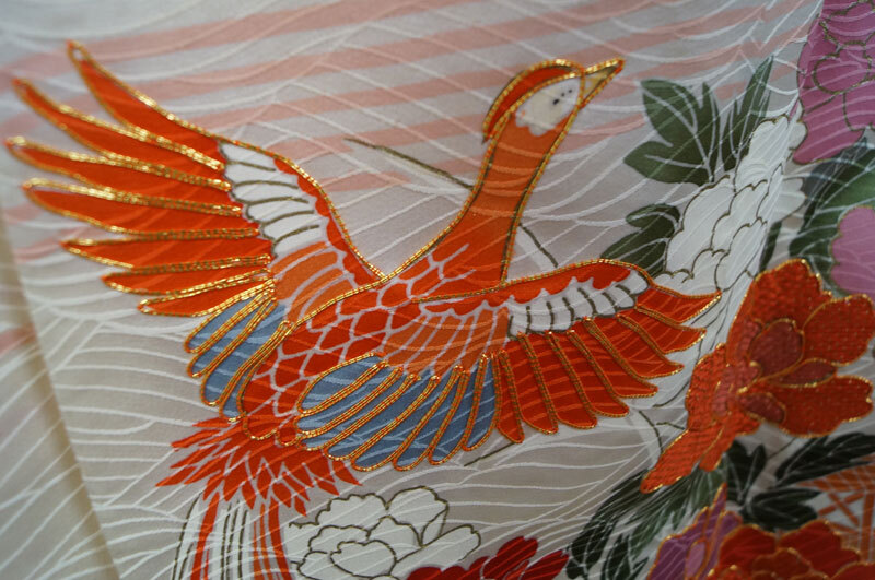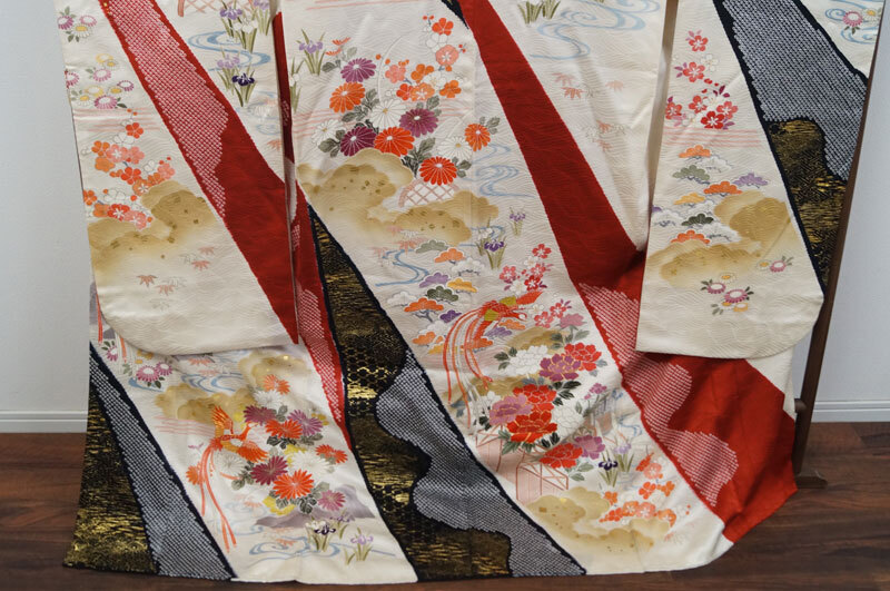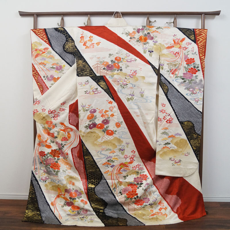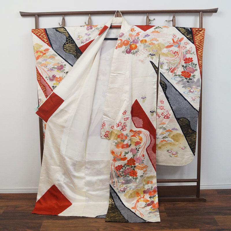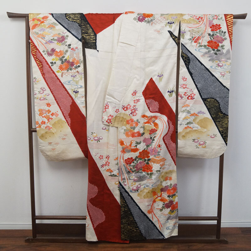 | ye30-振袖 鳳凰 赤 黒 金彩 金糸 正絹 高島屋 仕立仕上がり品 着物帯 和服 和装 |
