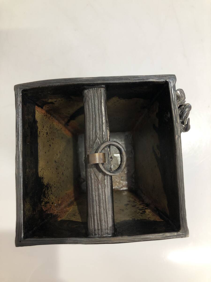 | 商品名 | 村田宏作高岡銅器 蟹高肉盛上文釣瓶花器釣瓶形吊花入つるべ花入銅花器 |