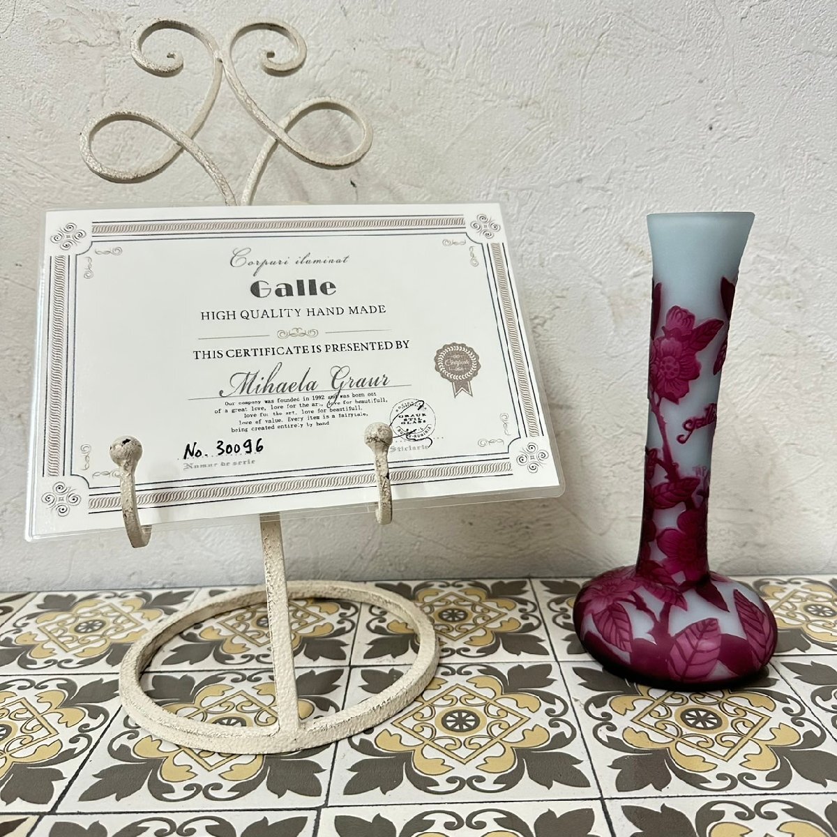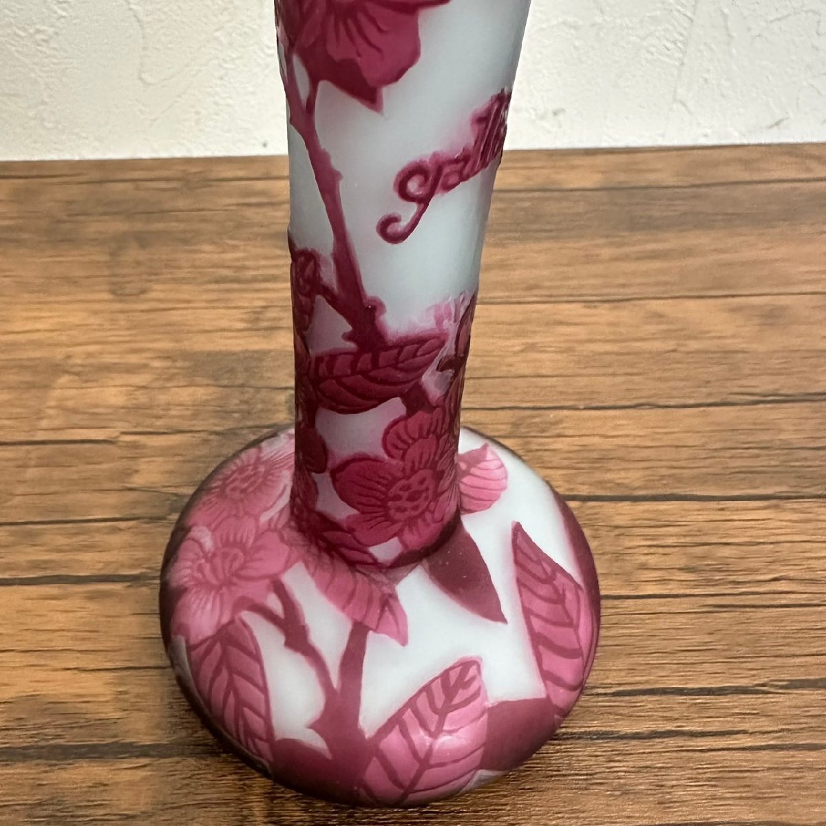 品名【証明書】エミールガレ かわいいサイズ 一輪挿し 花瓶 カメオ彫り 被せガラス