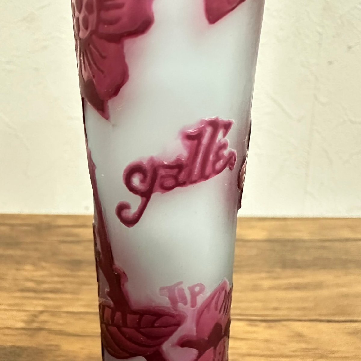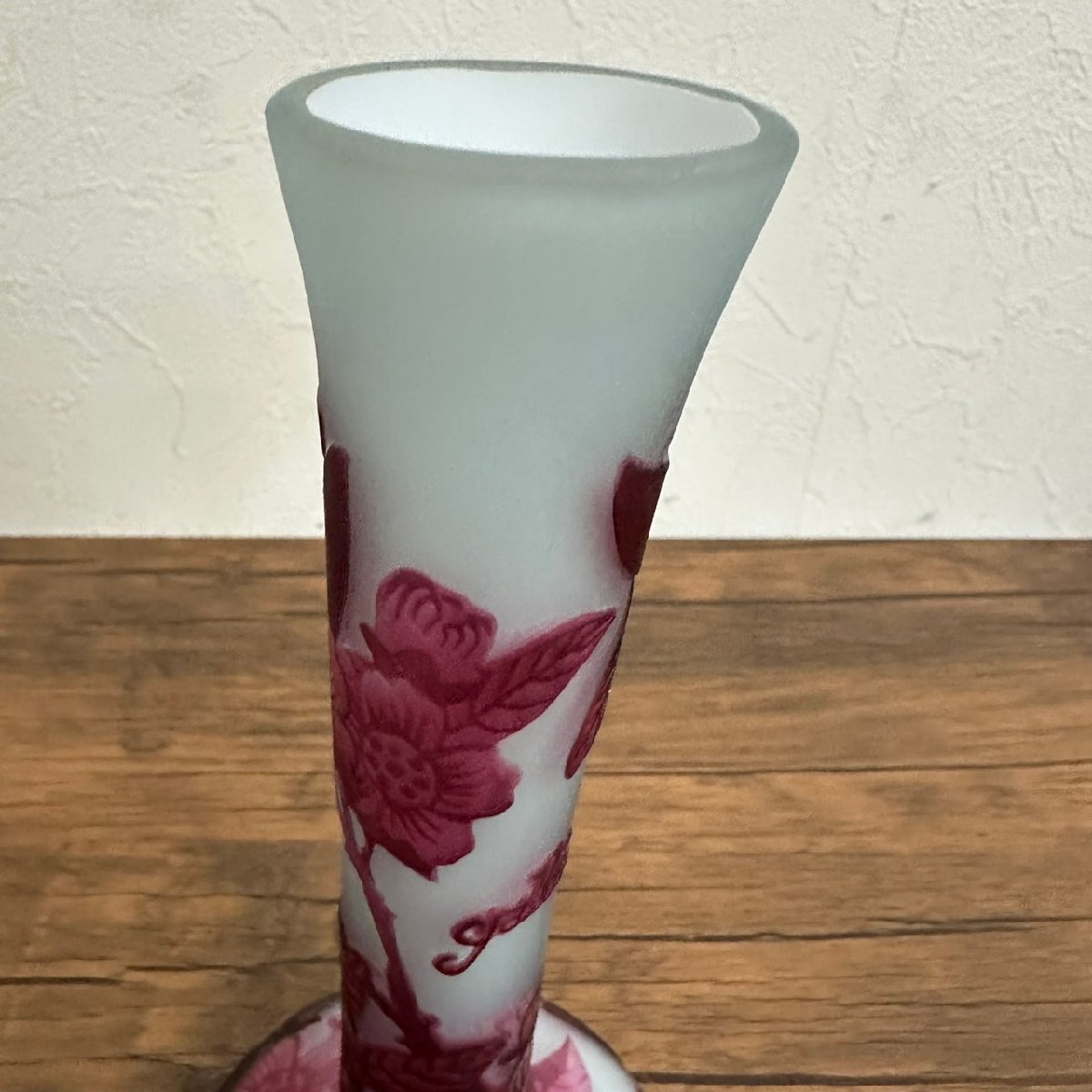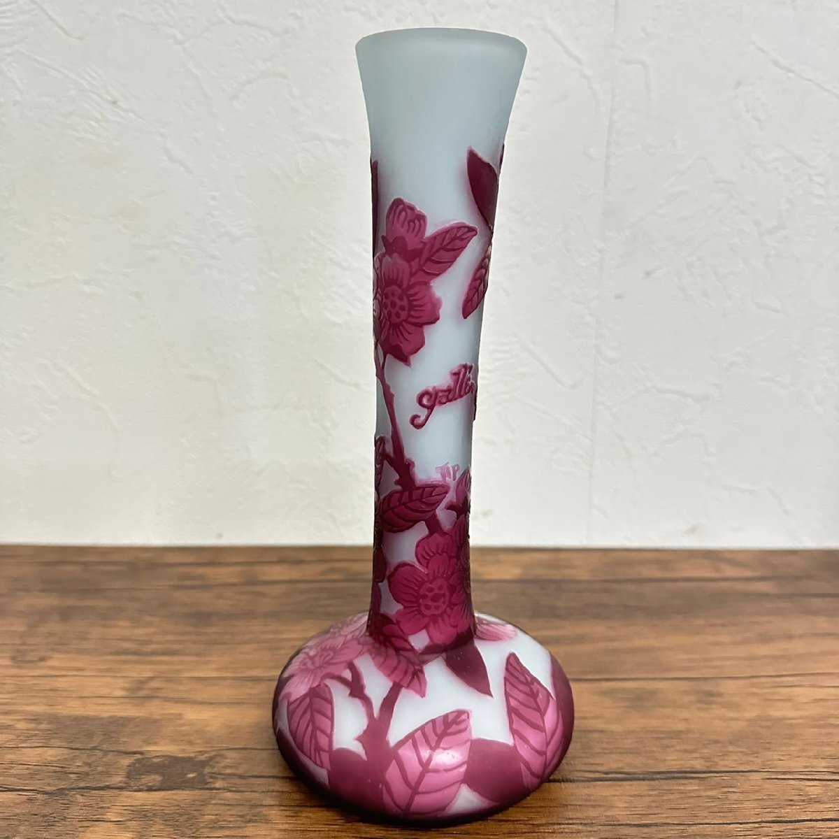 【証明書】エミールガレ かわいいサイズ 一輪挿し 花瓶 カメオ彫り 被せガラス  FG868