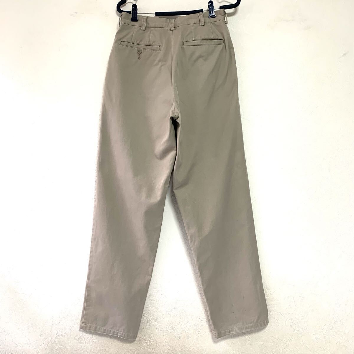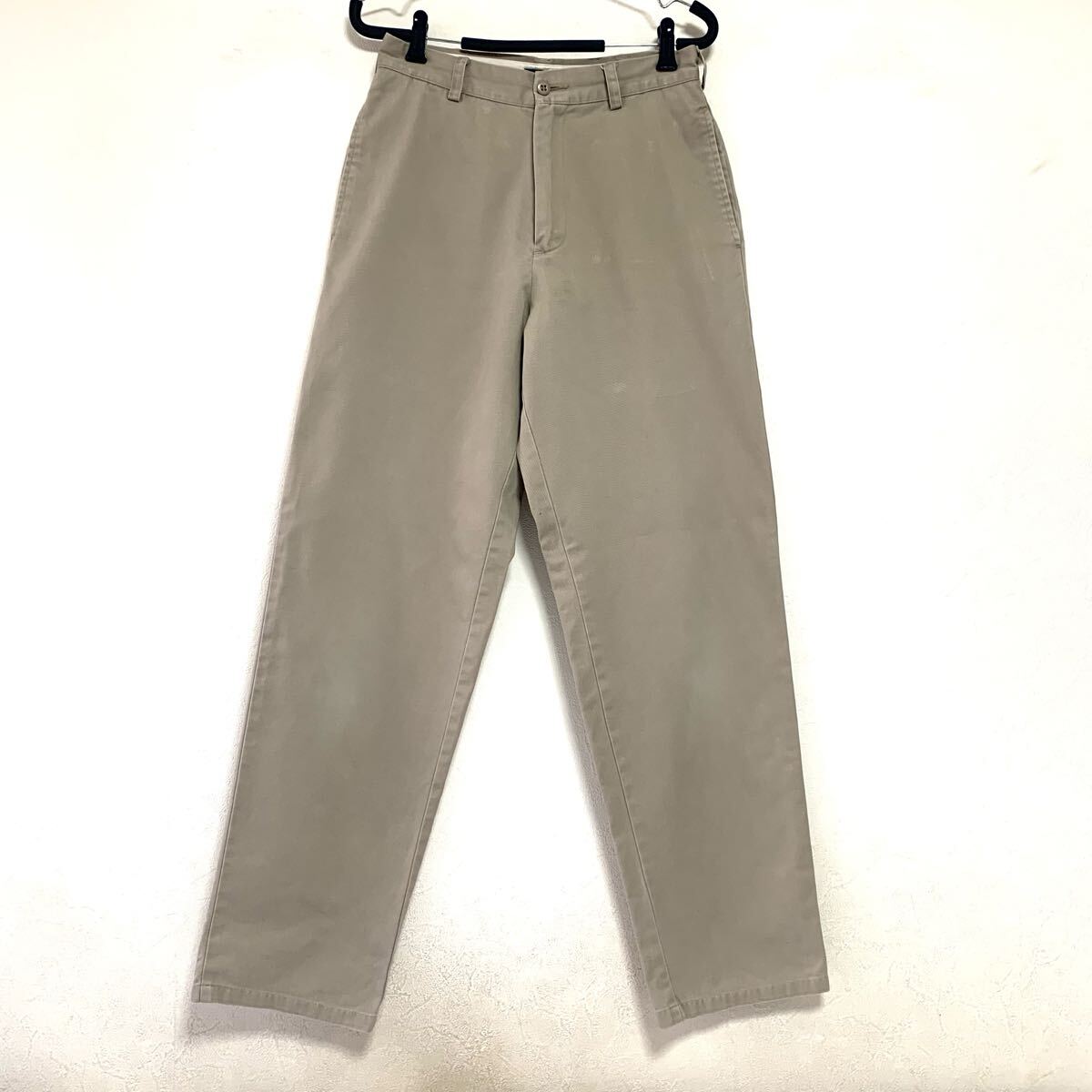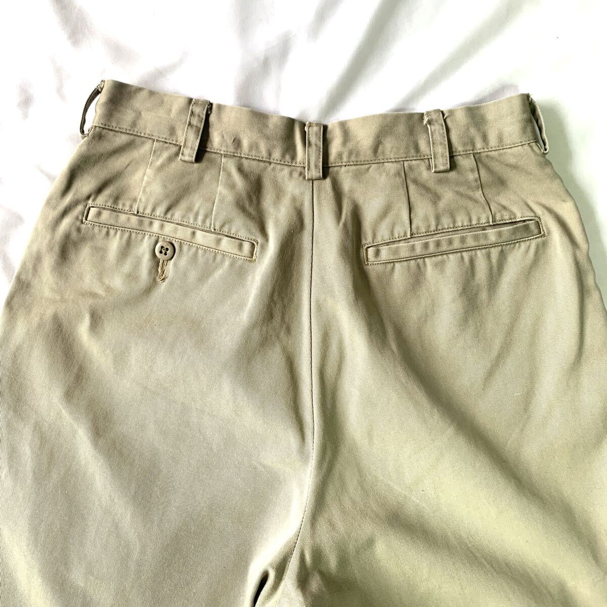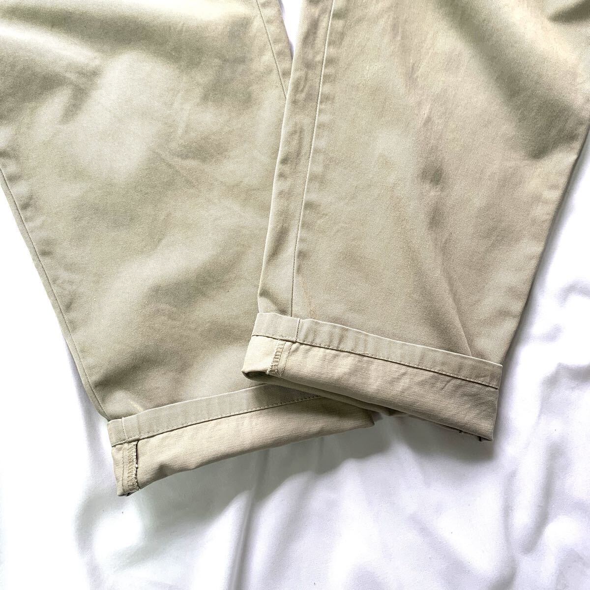 ■腰周りゆったり、裾にかけて軽くテーパーが効いているベーシックなシルエットのチノパンです。軍物からサンプリングされたような雰囲気もあり、アメカジはもちろん、バブアー等に合わせてもピッタリ、00年代のスタイルが一周回って今、大人のカジュアルにちょうど良いシルエットになっています。履き込まれて生地が柔らかくなっているのでゴワつき無く体に馴染むかと思います。オールシーズン履けて幅広いスタイルに落とし込める万能パンツですのでオススメです。