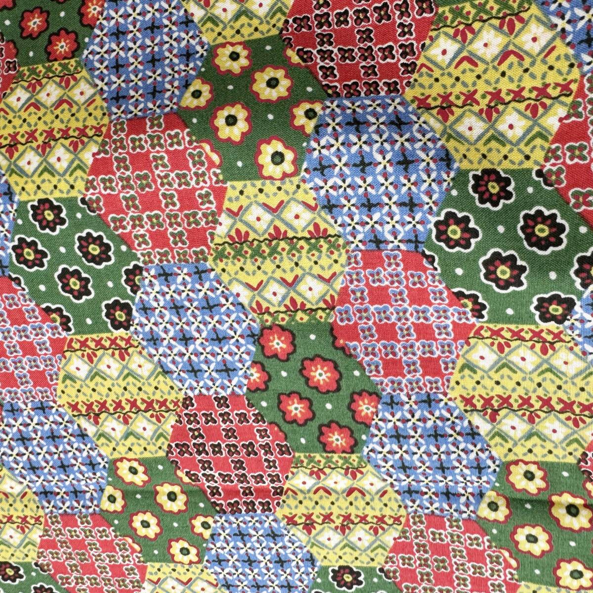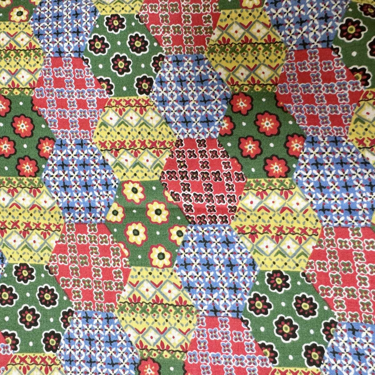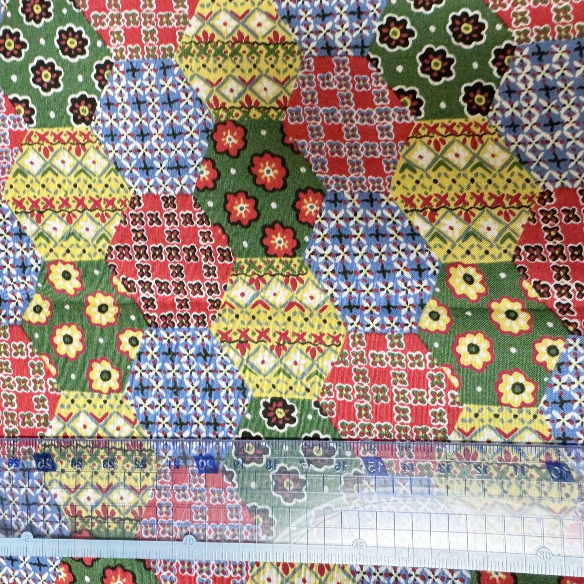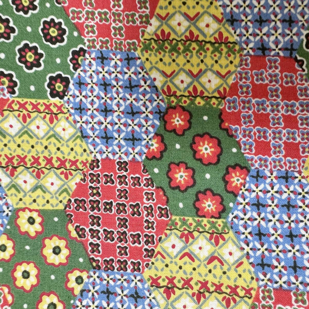 レトロ幾何学ヘキサゴン花柄パッチワーク★カラフル☆シーチング生地1m布はぎれ