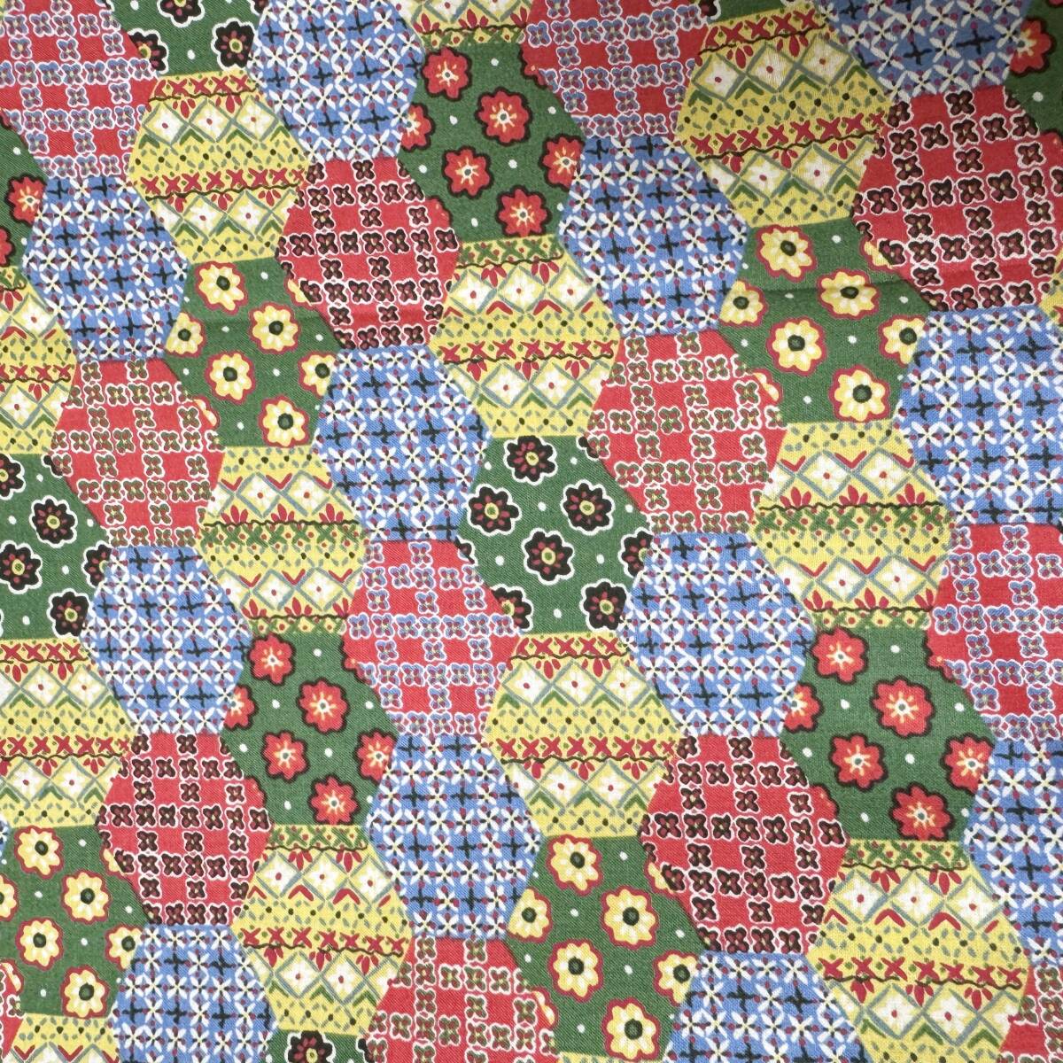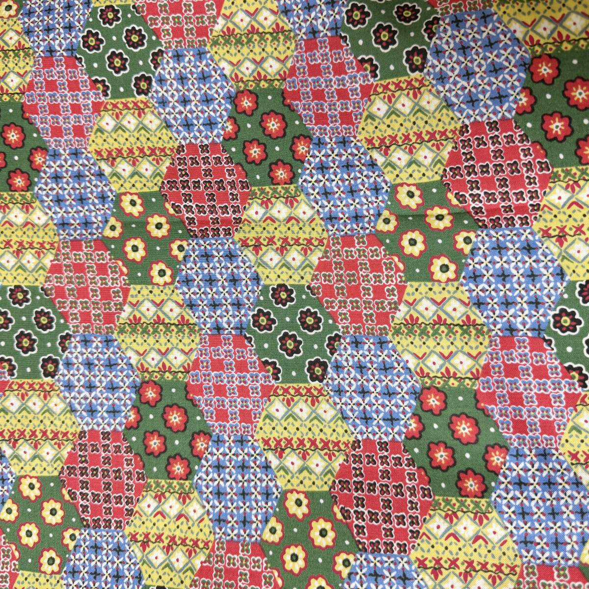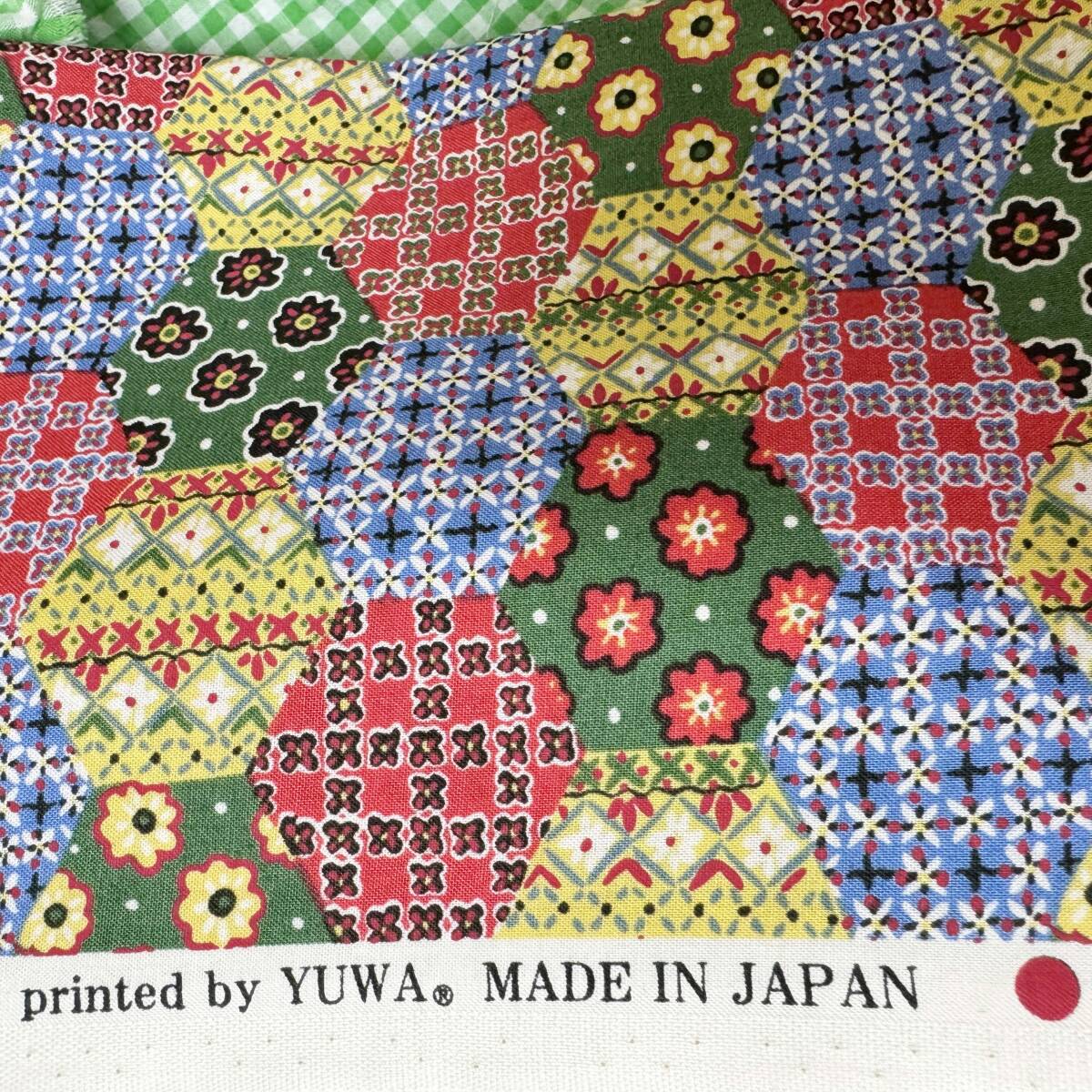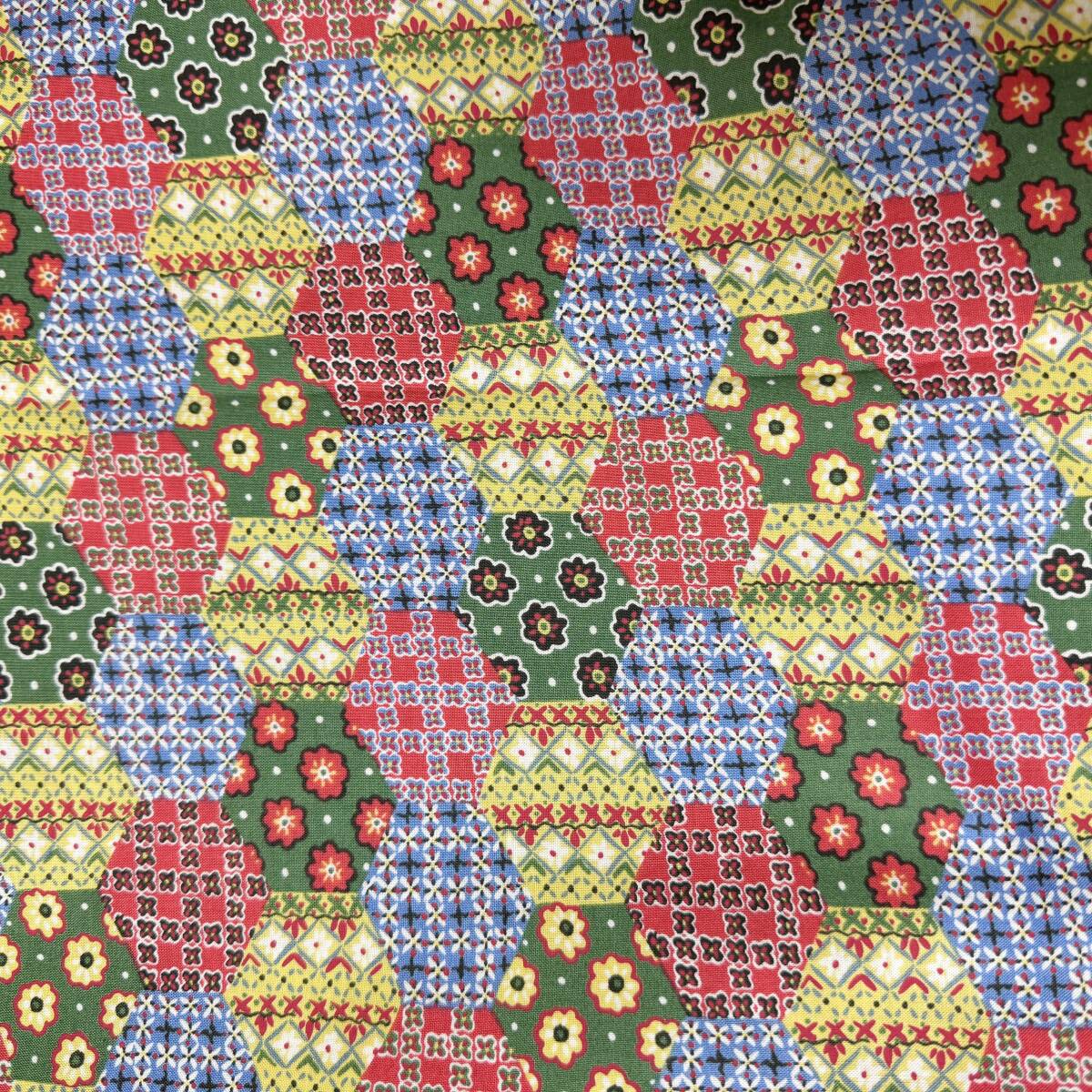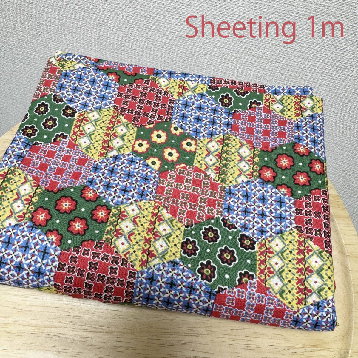 レトロ幾何学ヘキサゴン花柄パッチワーク★カラフル☆シーチング生地1m布はぎれ