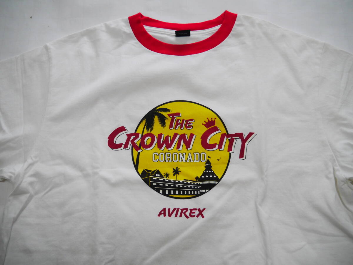 | ご覧頂きありがとうございます。 | 【美 品】AVIREX アヴィレックス 半袖Tシャツ 本物正規品 サイズXL オフホワイト×レッド THE CROWN CITYプリント |