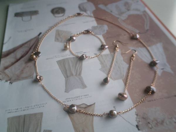 シック・フレンチの定義・・シリーズです♪主張するパール・・個性的なブロンズ・ベージュの芥子パールのネックレス、ブレスレット、ピアスの3点セットです♪シックな色とデザインがキュートな表情です♪芥子パールは9ミリから11ミリ位です♪ネックレスの長さは49センチ+アジャスター11センチで最長60センチ位です♪ブレスレットは16センチ+アジャスター6センチで最長22センチ位です♪ピアスは全長8センチ位です♪ピアスはイヤリングにも変更出来ます♪それぞれ単品やお揃いのネックレスやブレスレットやピアスも出品しています♪♪シンプルで飽きのこないいつまでも着けられるデザインを考えて作りました!ハンドメイドをご理解頂いてノークレーム、ノーリターンでお願いします