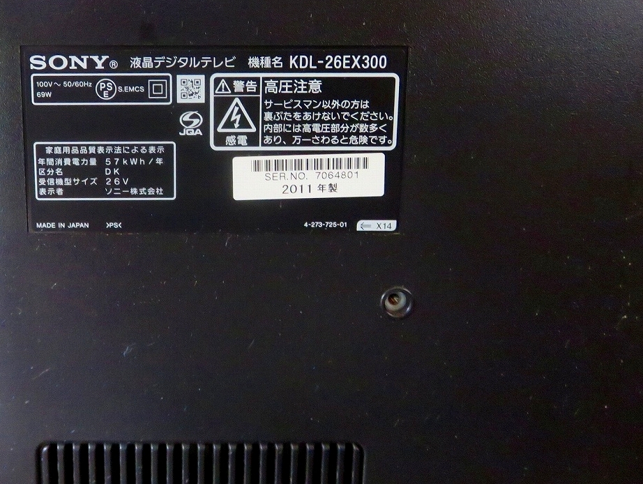 SONY 26V型 ハイビジョン液晶テレビ BRAVIA KDL-26EX300(B) リモコン+B-CAS付 | ||