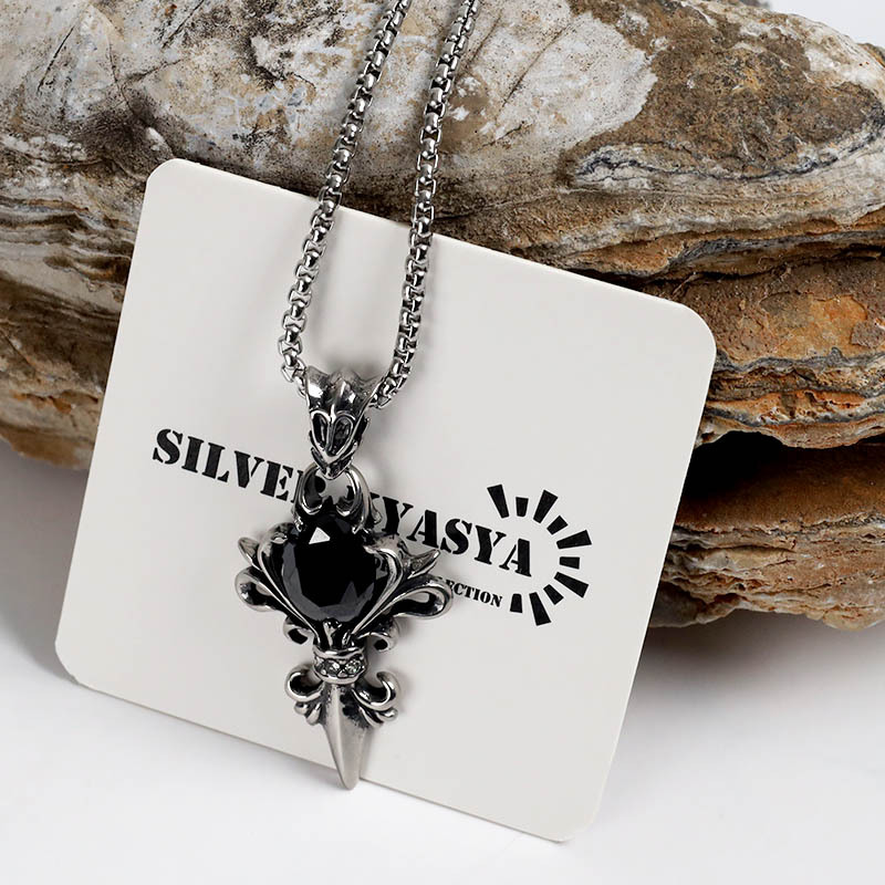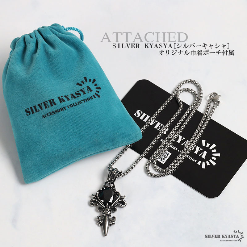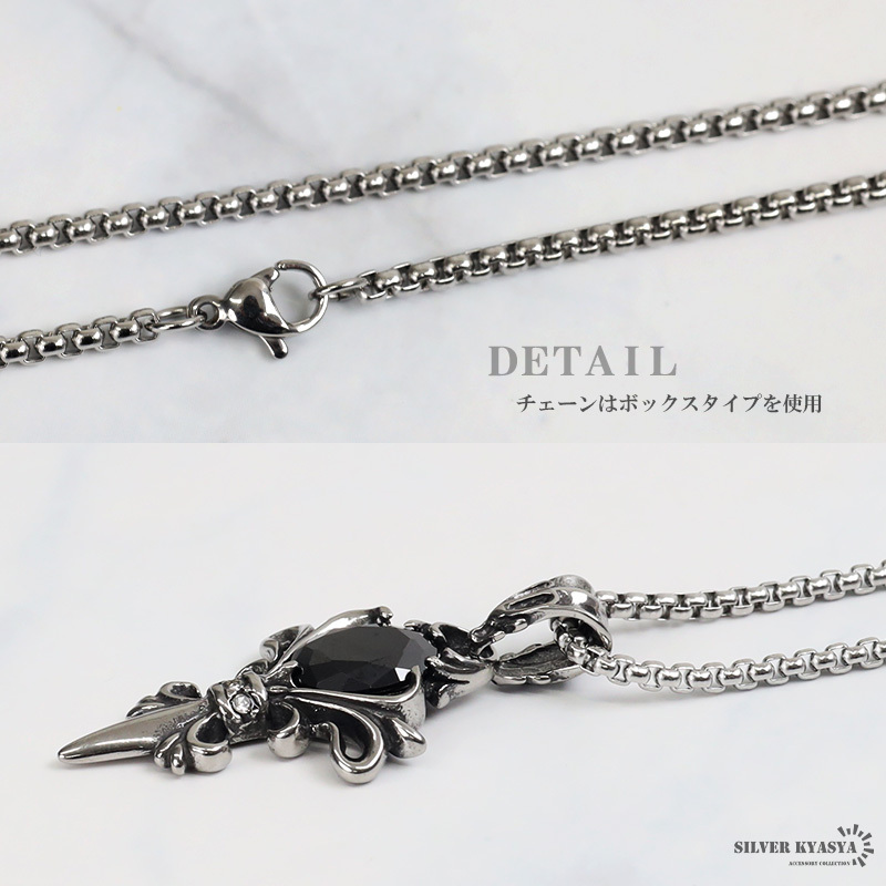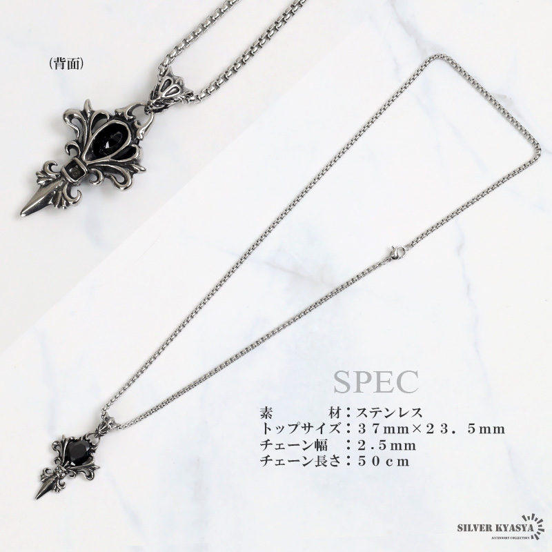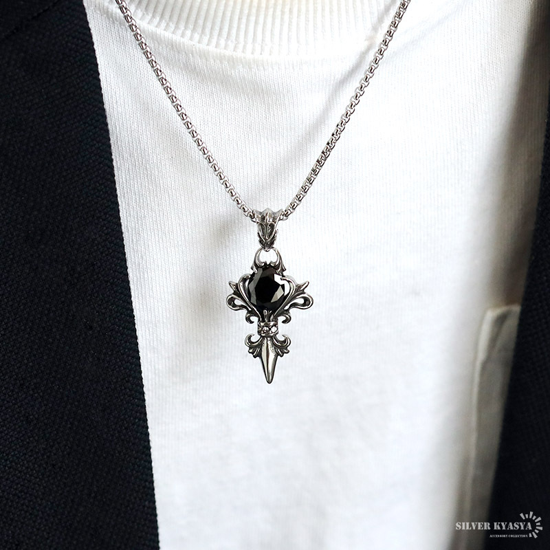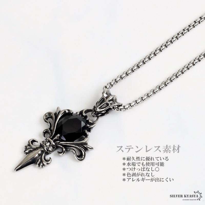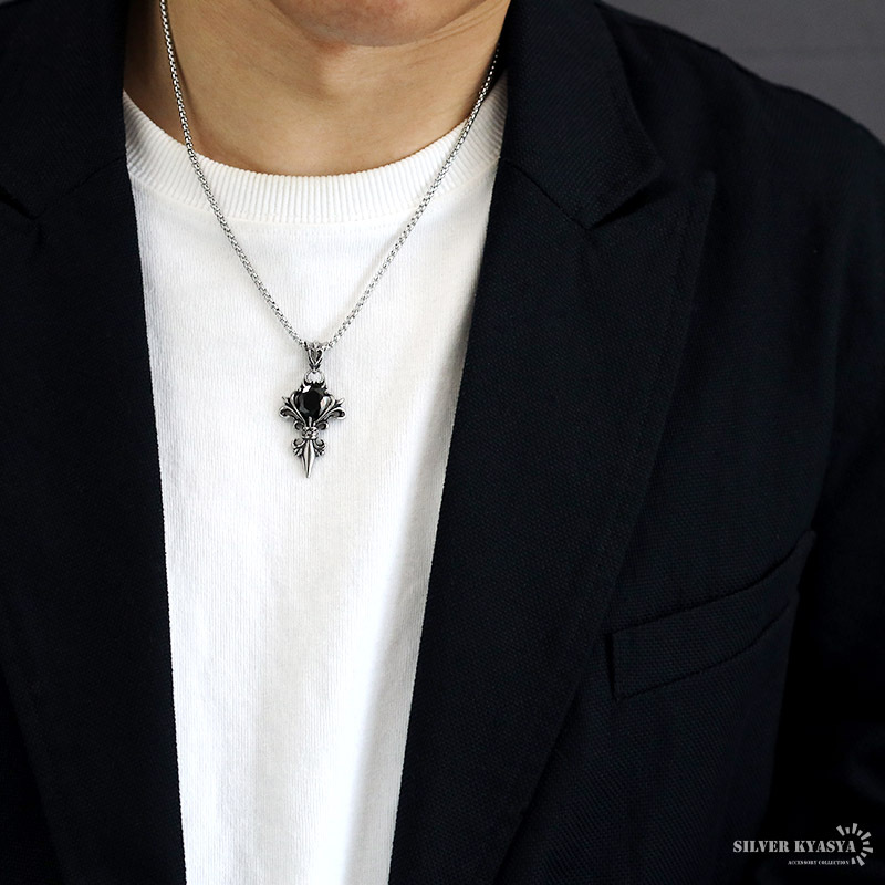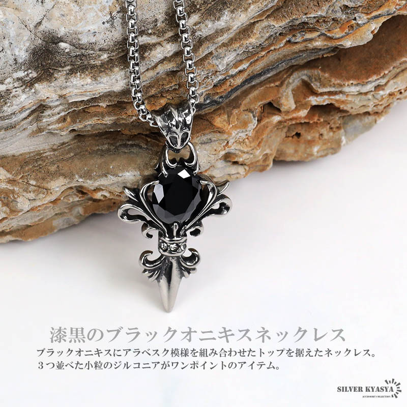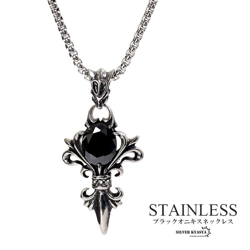 ステンレス 唐草 クロスネックレス シルバー オニキス アラベスク ペンダント ビンテージ ネックレス かっこいい