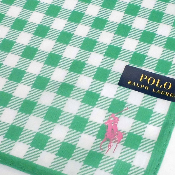 ●[60]POLO RALPH LAUREN ポロ・ラルフローレン ハンカチ チェック柄 グリーン 綿100% 日本製 50cm メンズ レディス