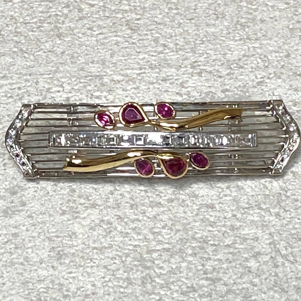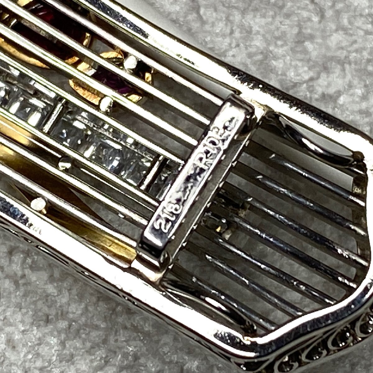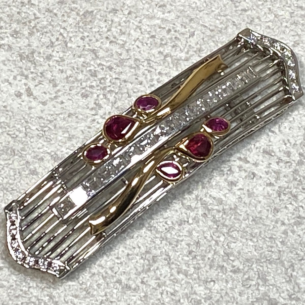 | ☆Pt900(プラチナ)/K18 ダイヤモンド2.18ct/ルビー1.02ct 和装小物/高級帯留 重量約20.7g 鑑別書付き 管理No401 | ||