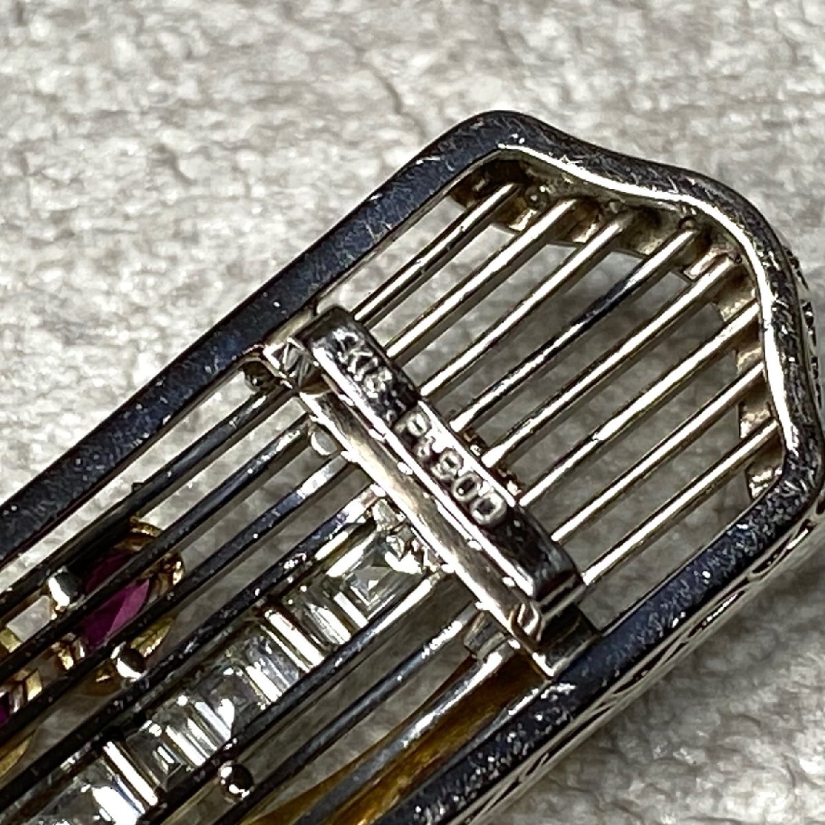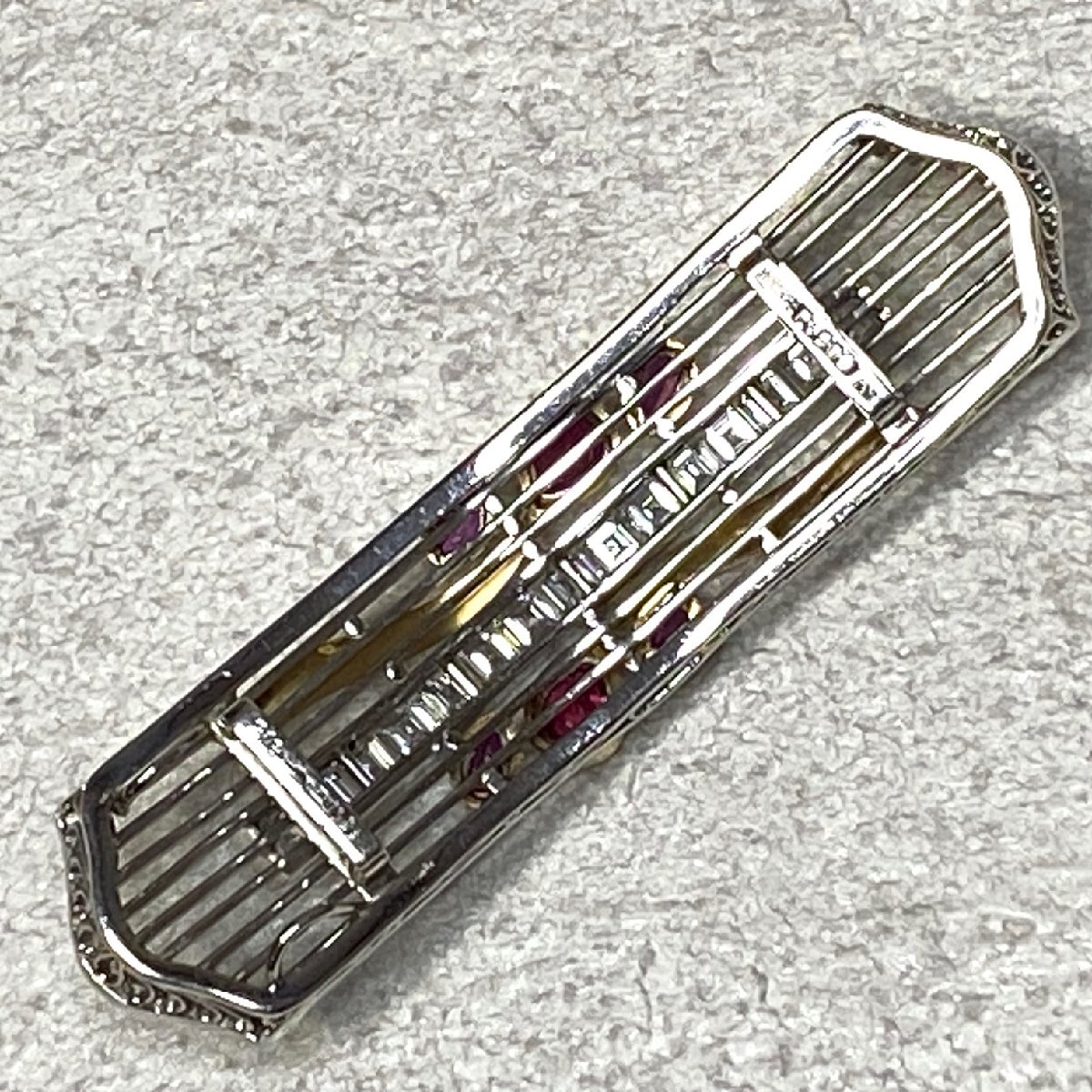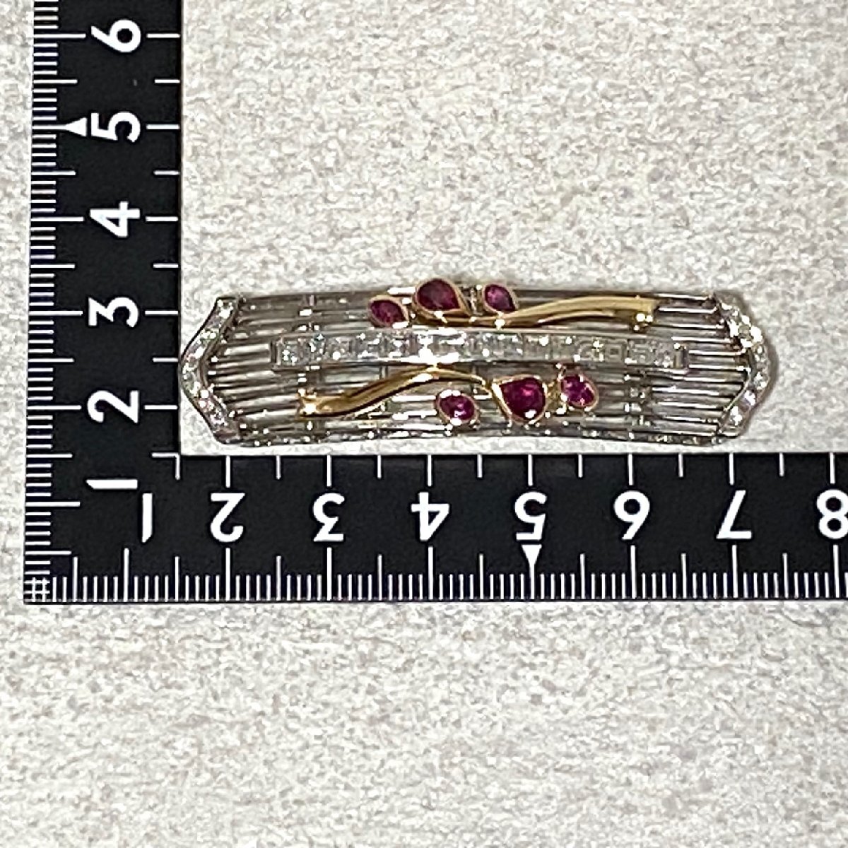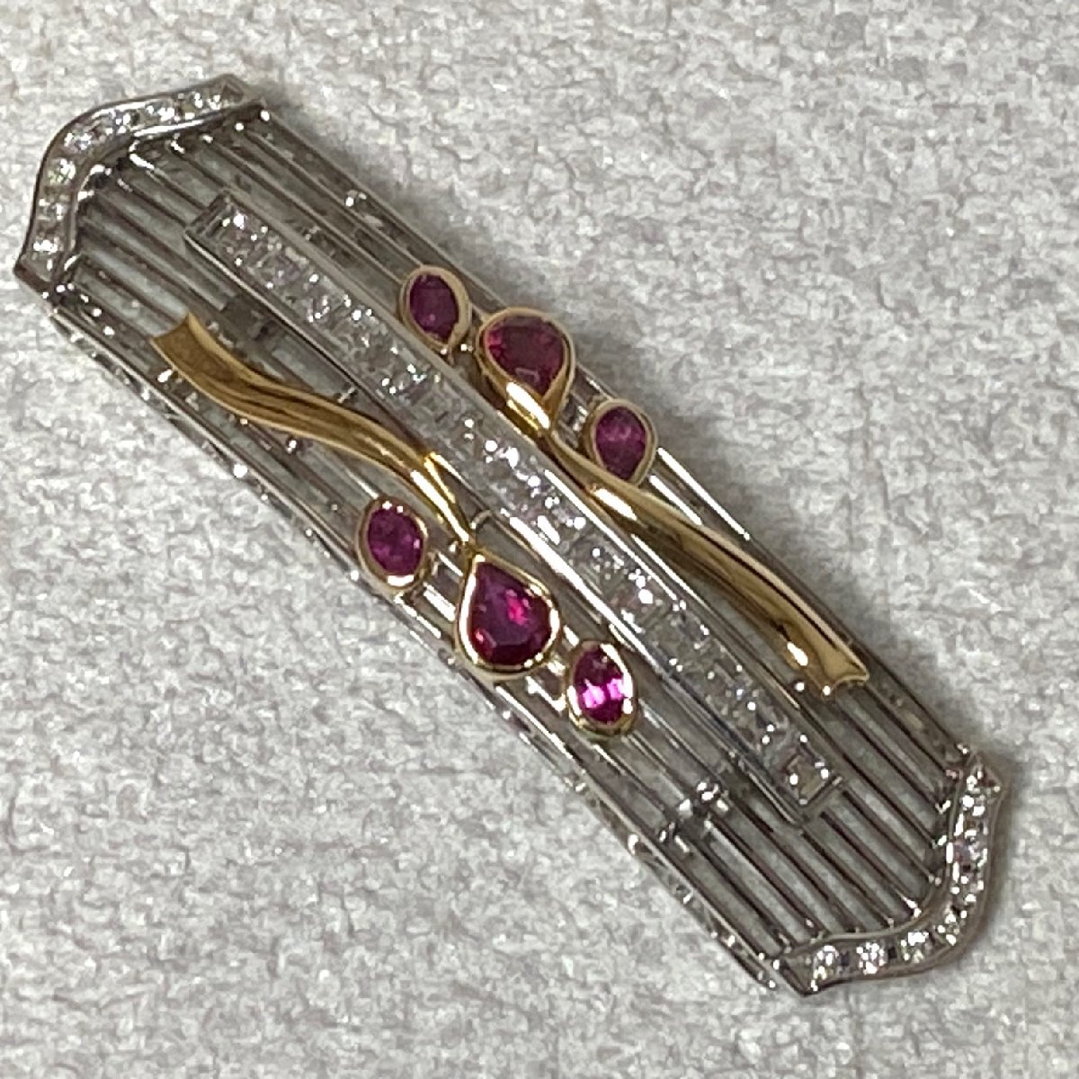 | ☆Pt900(プラチナ)/K18 ダイヤモンド2.18ct/ルビー1.02ct 和装小物/高級帯留 重量約20.7g 鑑別書付き 管理No401 | ||