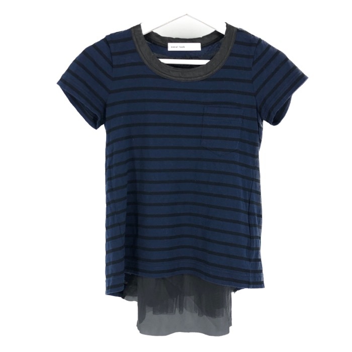 商品説明 | 【管理番号】 015456s 【ブランド名】 sacai luckサカイラック 【商品名】 【アイテム】 半袖カットソー Tシャツ クルーネック 異 【素材】切替デザイン 【サイズ】1 S相当 【型番】 15SSLU939 【サイズ】 1(S相当) 平置採寸(肩幅:約31cm・身幅:約40cm・袖丈:約14cm・着丈:約55cm) 【色・柄】 ブルー ブラック ボーダー柄 【素材】 本体:コットン100% 別布1:キュプラ100% 別布2:ポリエステル100% 【付属品】 タグ 【外観ランク】NSランク【内観ランク】 【商品補足説明】 【未使用品】 | ||
