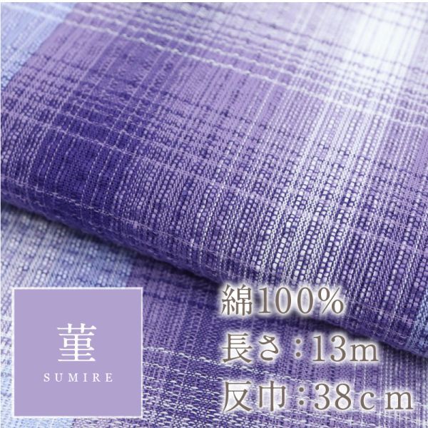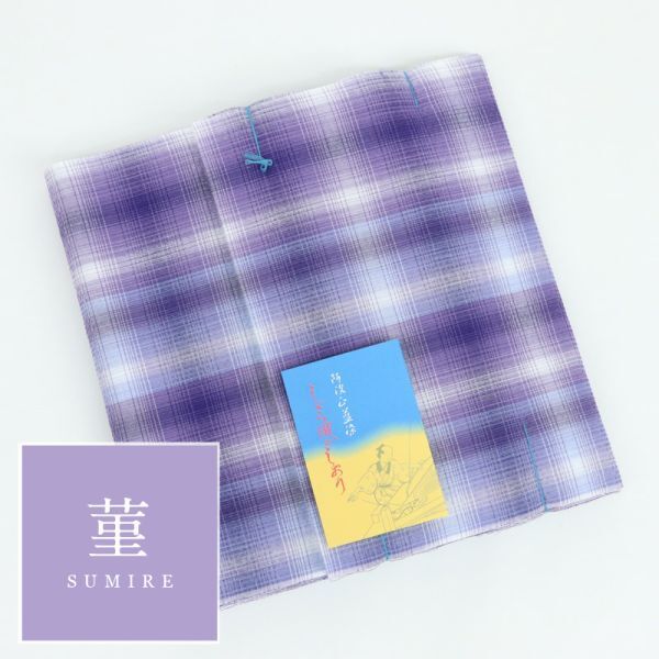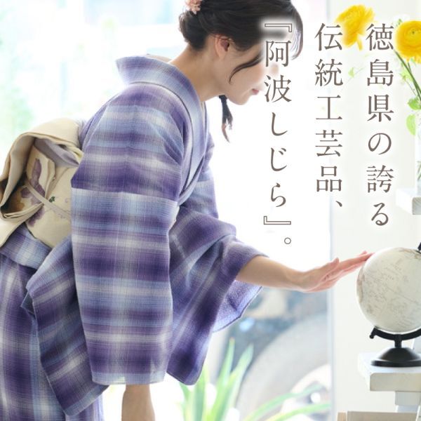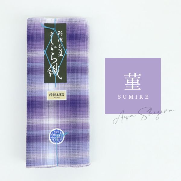 【阿波しじら】 『反物』 グラデーションチェック 菫 D8 紫 チェック パープル 13m 女性用 木綿 洗える 夏着物 浴衣 お仕立て可 【針子】