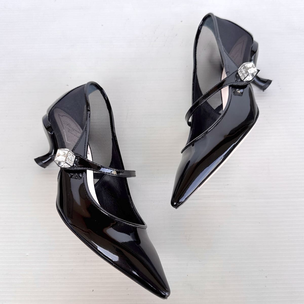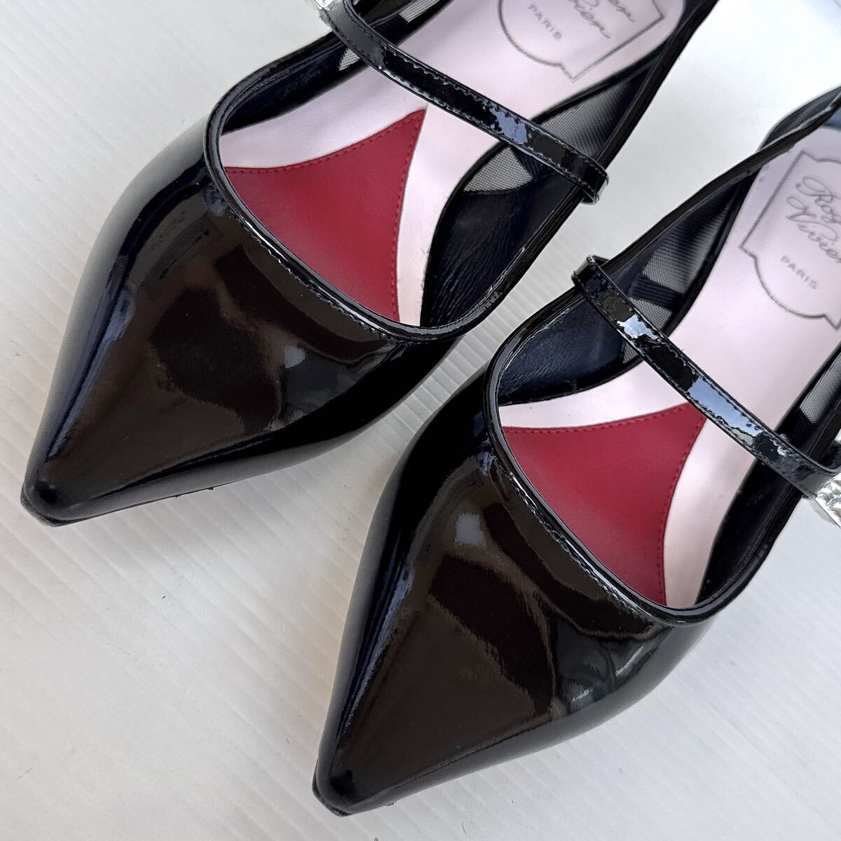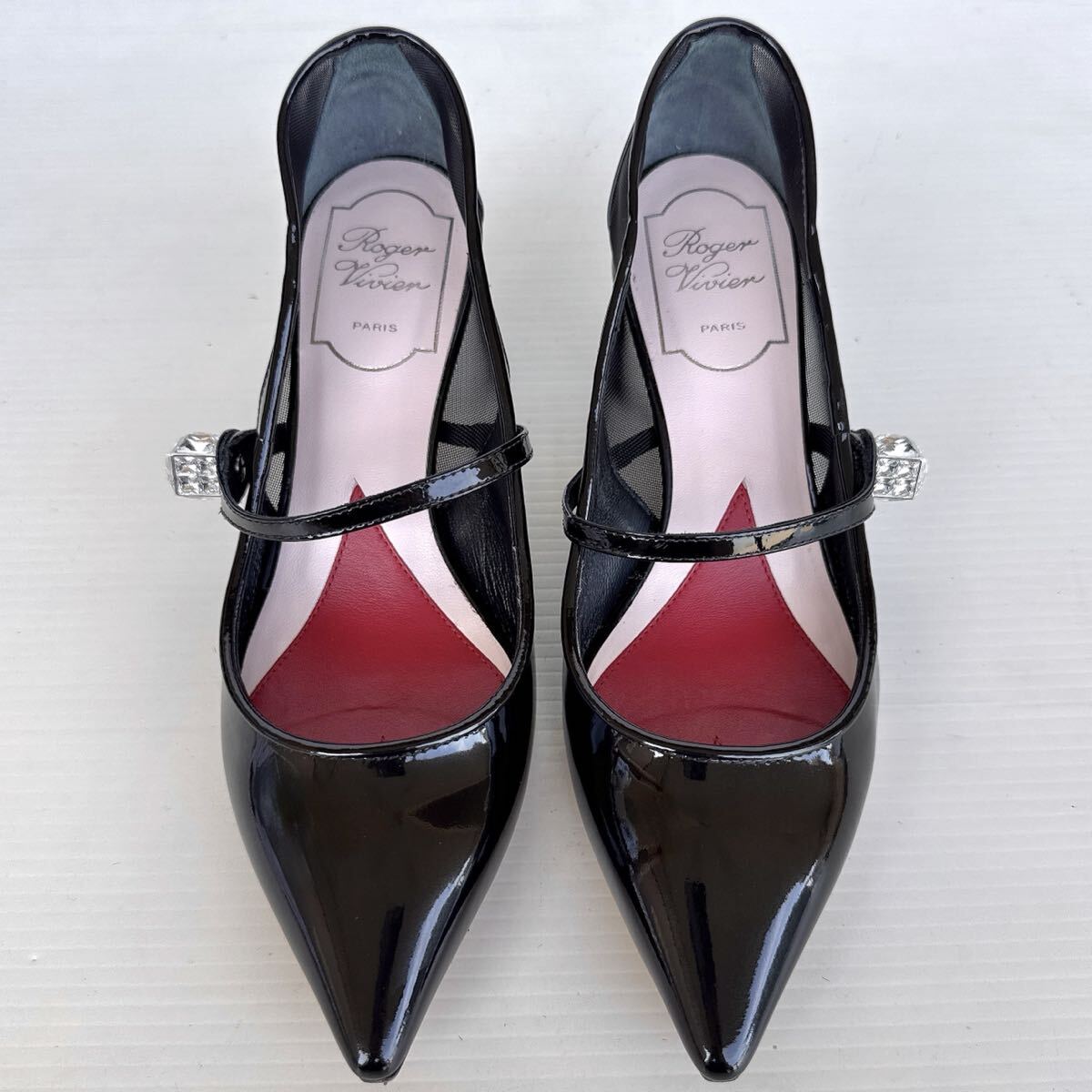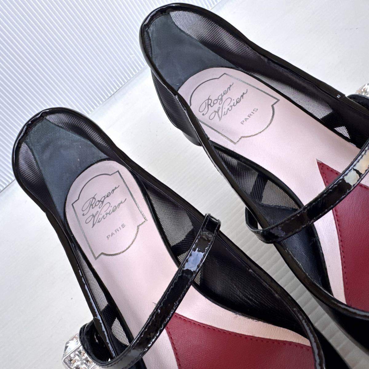 Roger vivier ロジェヴィヴィエ ストラップ付き パンプス フラットシューズ ミュール サンダル ローヒール ビジュー クリスタル ラインストーン装飾 ポインテッドトゥ イタリア製 レーディス シューズ 靴