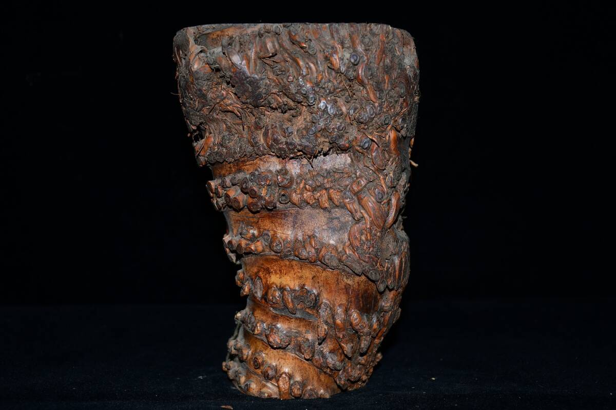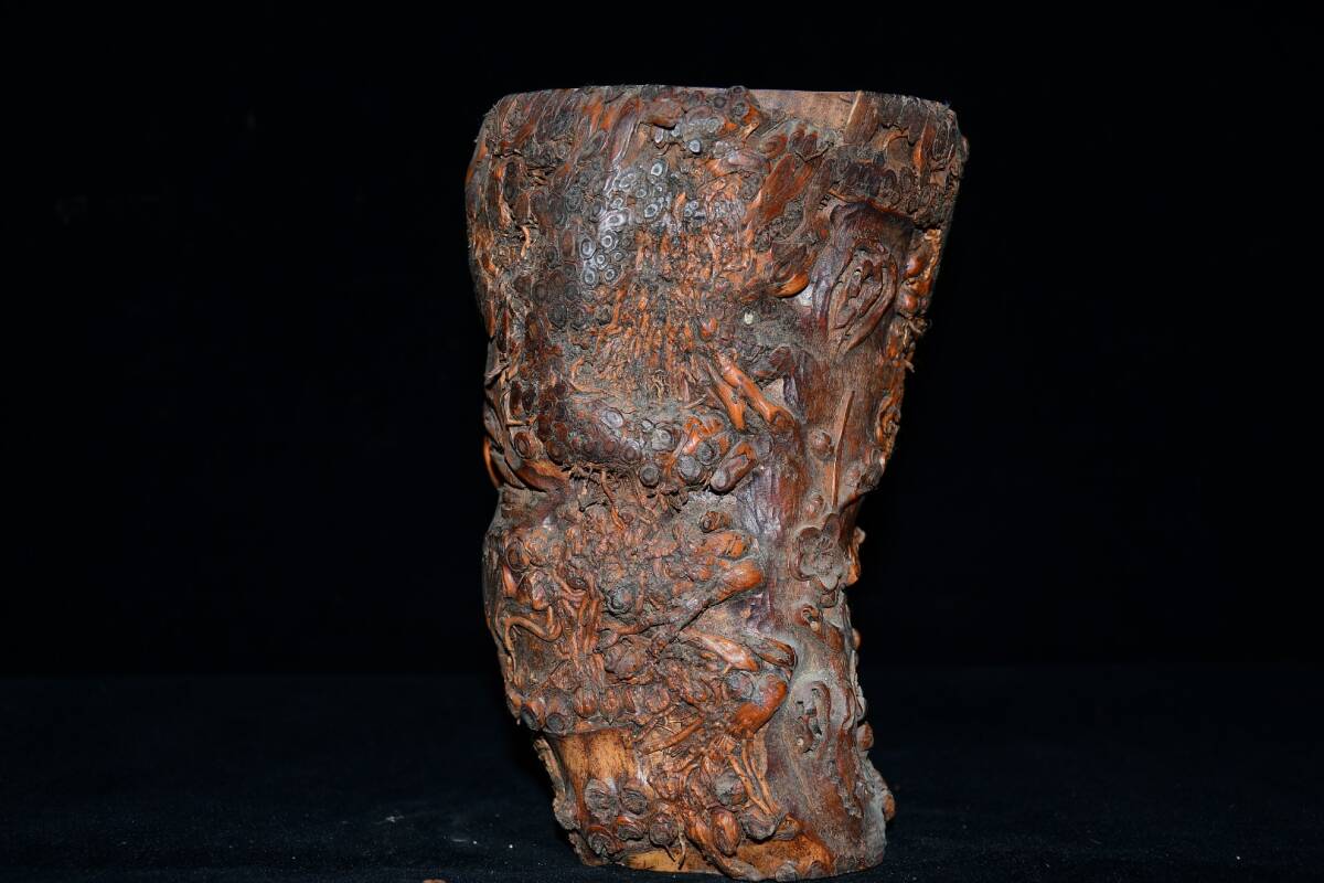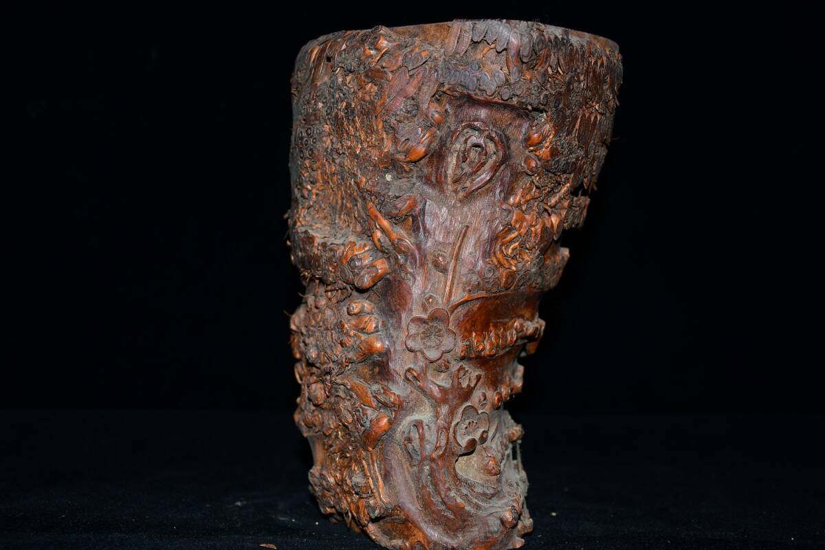 *珍品旧蔵* 清 竹材細密彫 筆立て 筆道具 文房具 極細工 中国古玩 骨董品 古美味 H48