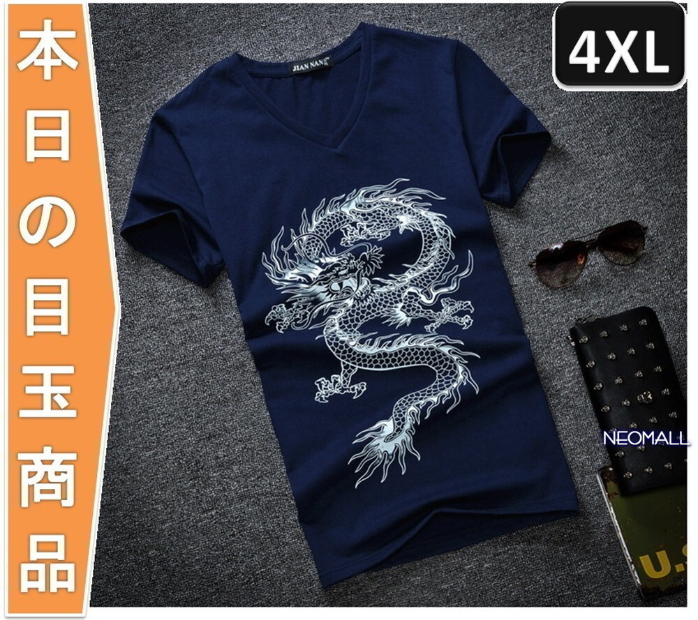 今日の目玉 ☆ 丸首 半袖 Tシャツ【295】ブルー 4XLサイズ トップス お洒落 シンプル 春夏