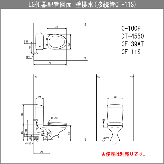 ★ LIIXL INAX LG便器(手洗なし・壁排水) 便座なし C-100P,DT-4550 ★