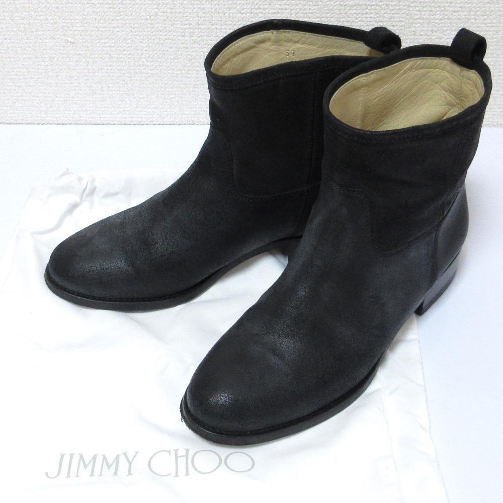 美品 JIMMY CHOO ジミーチュウ HARLEY スエード アンクルブーツ ショートブーツ 37 23.5cm相当 ブラック