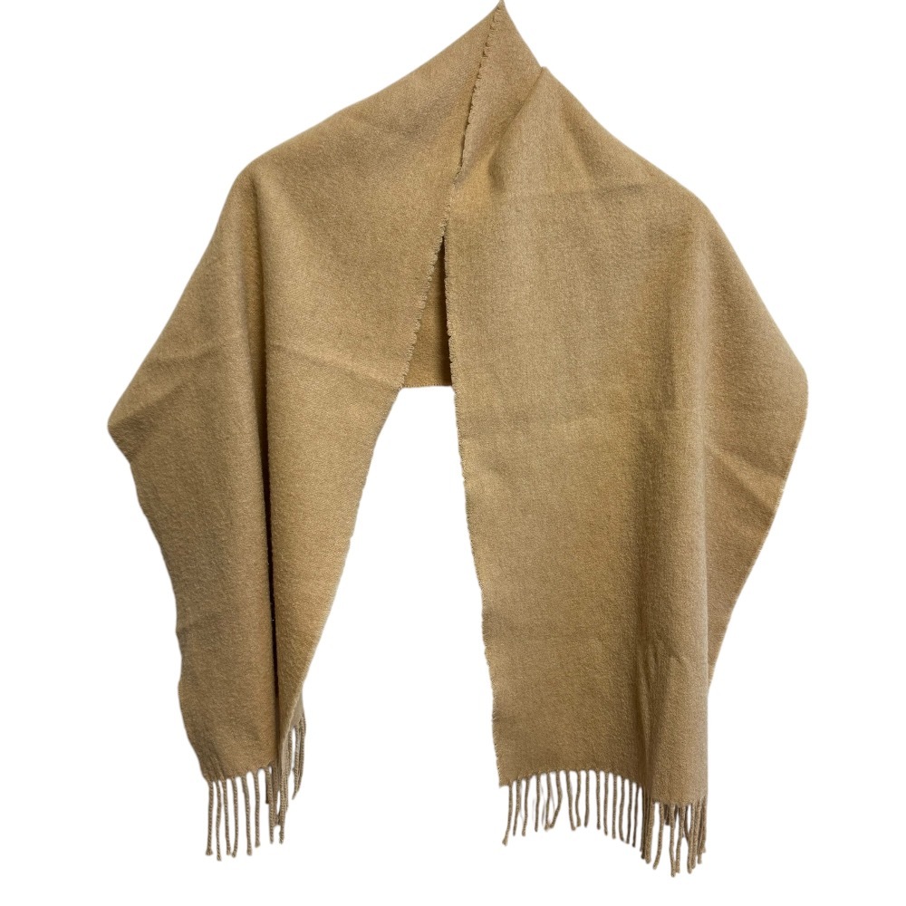 商品名:HERMES エルメス カシミヤ100% ロゴ刺繍 フリンジ マフラー ブラウンベージュ