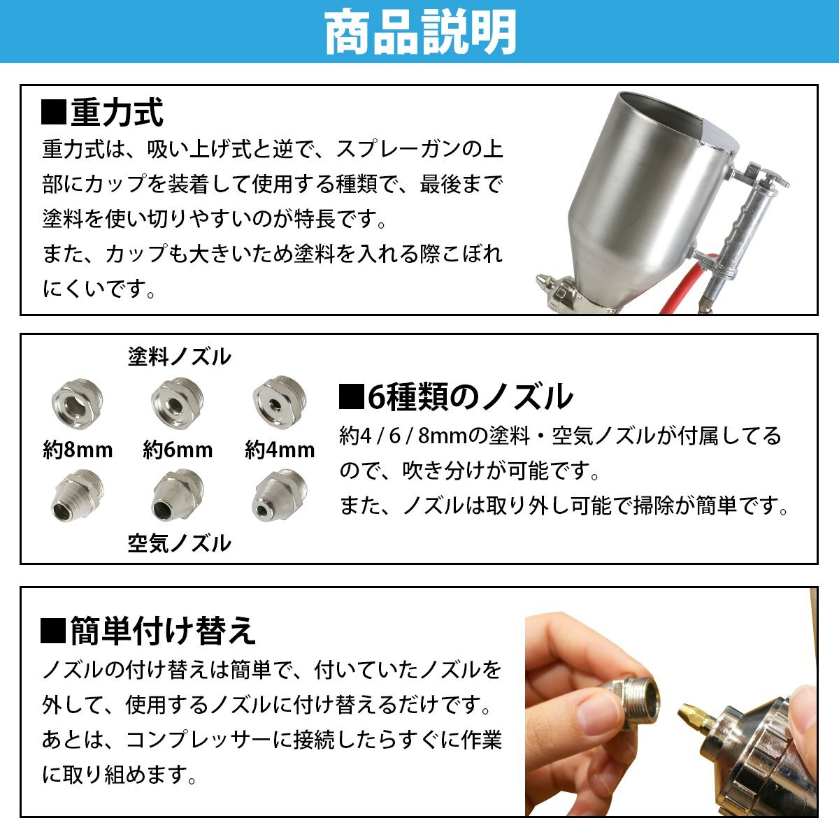 スプレーガンの上部にカップを装着して使用する重力式で、