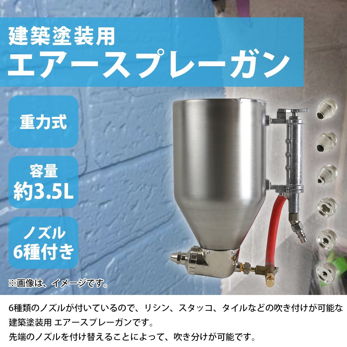リシンガン 建築塗装用 エアー スプレーガン 3.5L 外壁 吹付 塗装 モルタル スタッコ セメント ノズル6種付 重力式 エア