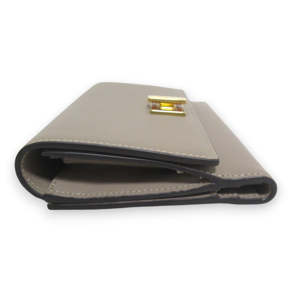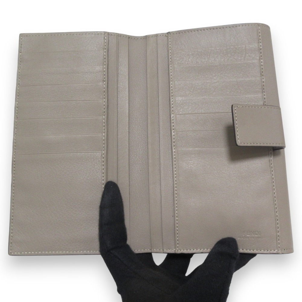 新品同様 FENDI フェンディ ピーカブー レザー 二つ折り長財布 ロングウォレット モカ ベージュ ゴールド金具